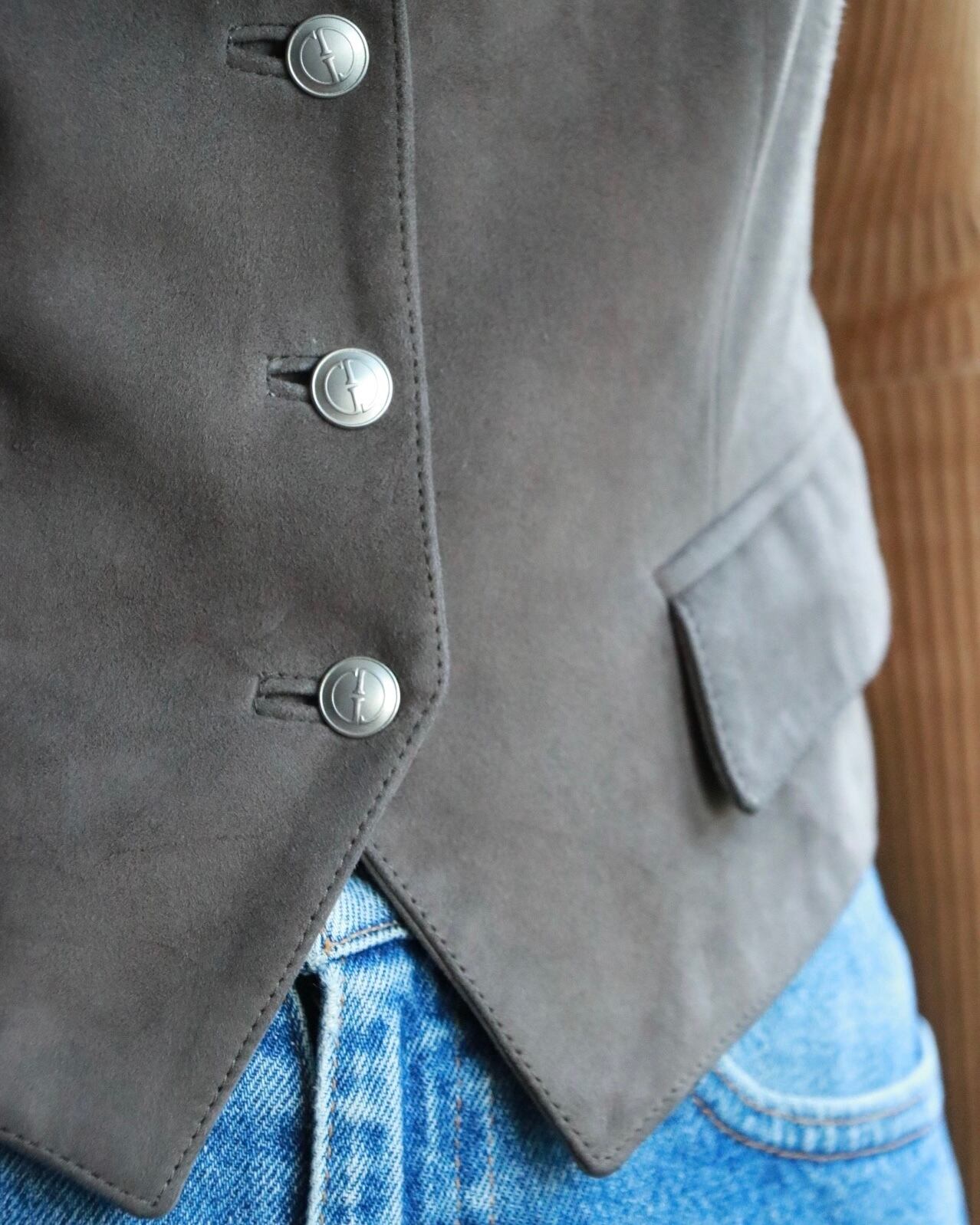 前面はスエード、背面はシルクの異素材コンビがユニークな一品。