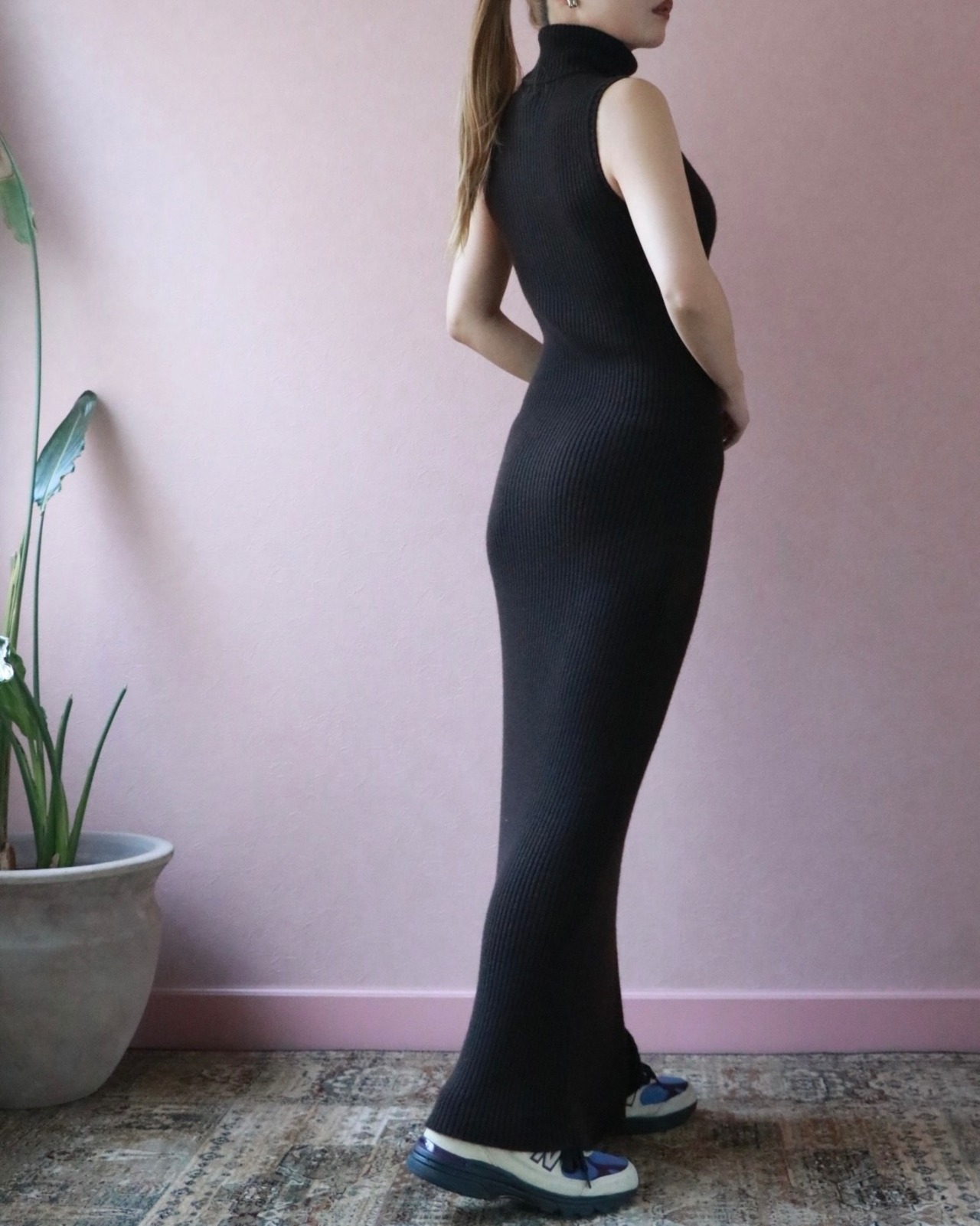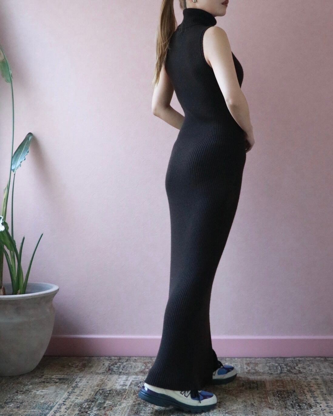上質なカシミヤとウール素材が優しく体を包み込む、シャネルのロングニットワンピースは1999年のもの。ロングでスリムなシルエットに加え、ノースリーブのタートルネックが全体的に美しい一着。胸元のココマークは上品なアクセントに。一見シンプルながらも計算されこだわりの詰まった一着は、現代女性の大人のエレガンスを表現するのにぴったり。