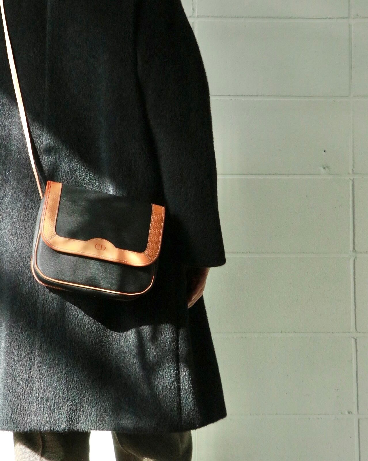 クリスチャンディオールのショルダーバッグは80年代のヴィンテージ。どんなコーディネートにも合うブラックとベージュのクラシックな組み合わせ。バッグ内側と外側にもCDのロゴが可愛いアクセントに。申し分のない容量感でデイリーユースに大活躍します。