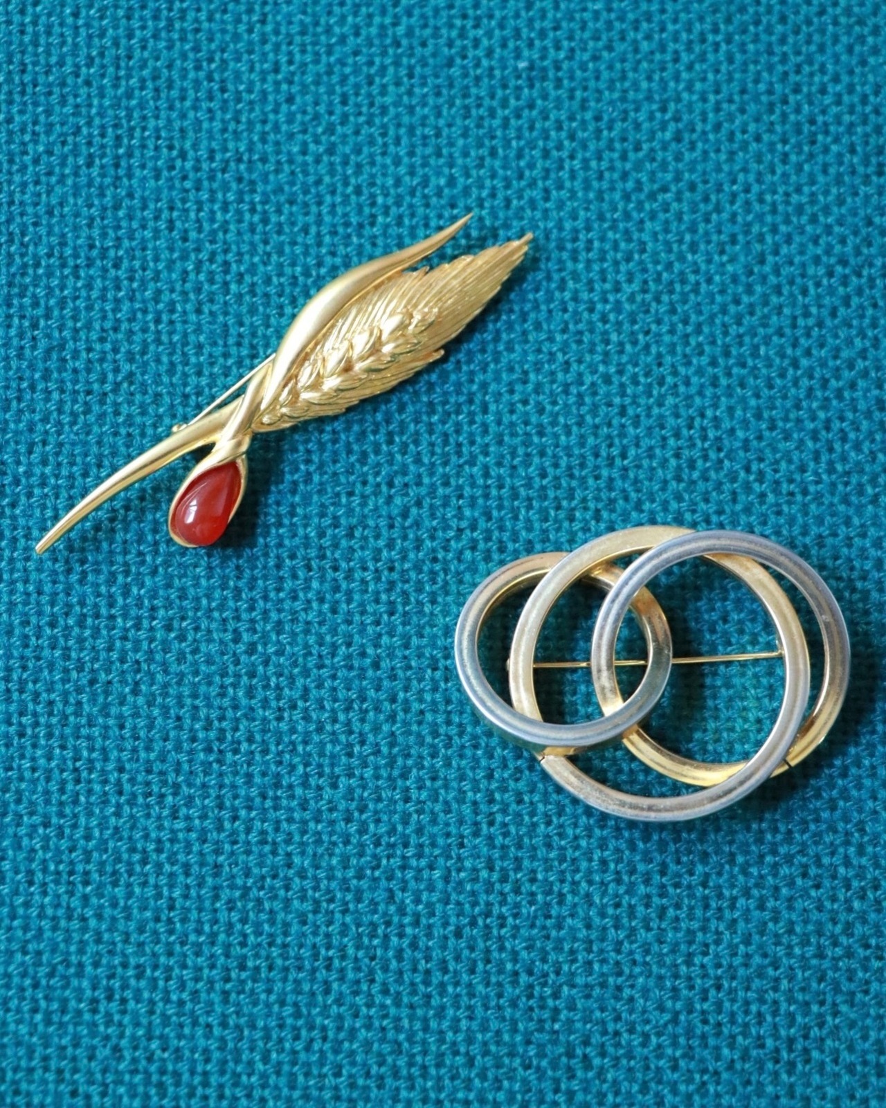 イタリアンブランド、マリアバレンティノのブローチ。オレンジカラーの涙型石に、羽モチーフのデザインがとっても可愛く、クラシックで上品な組み合わせ。今の季節はコートやジャケット、帽子などに、年中はトートバッグなどにと、アレンジのきくブローチはおすすめです。
