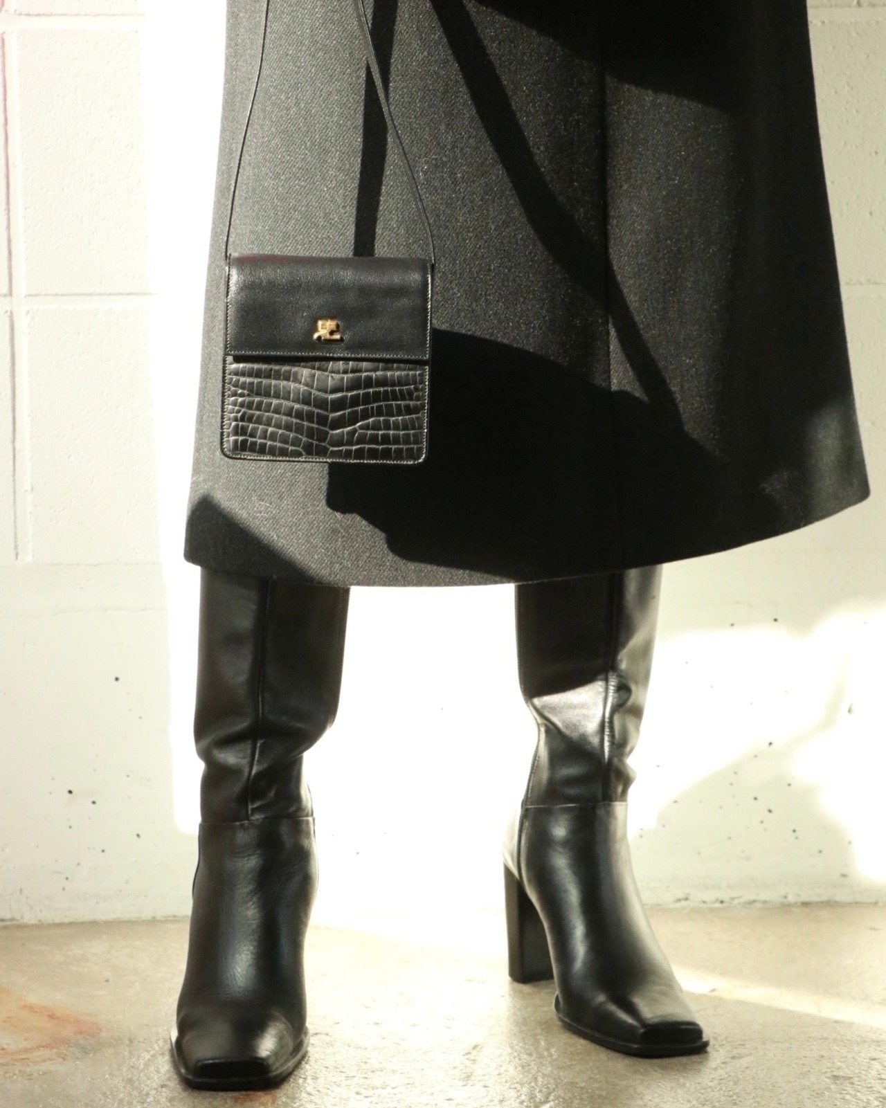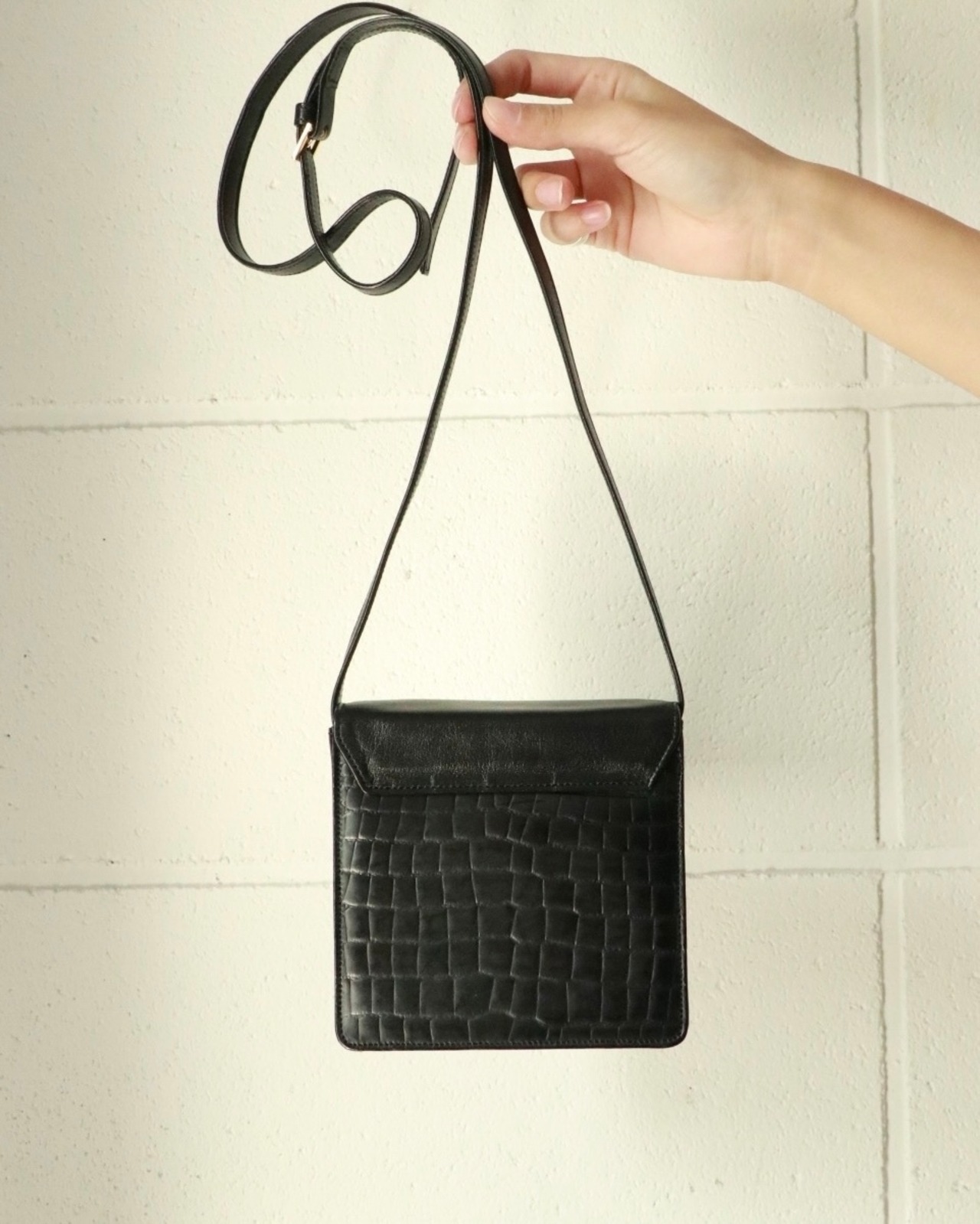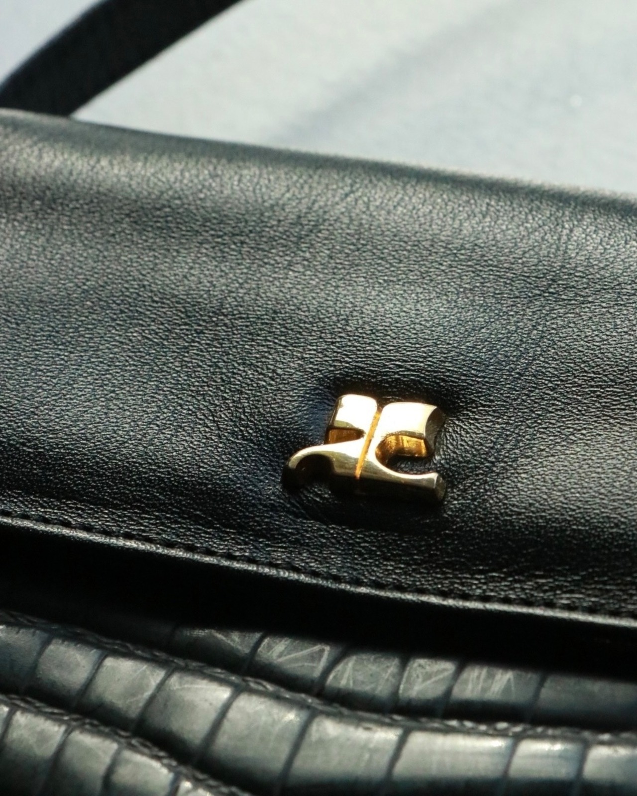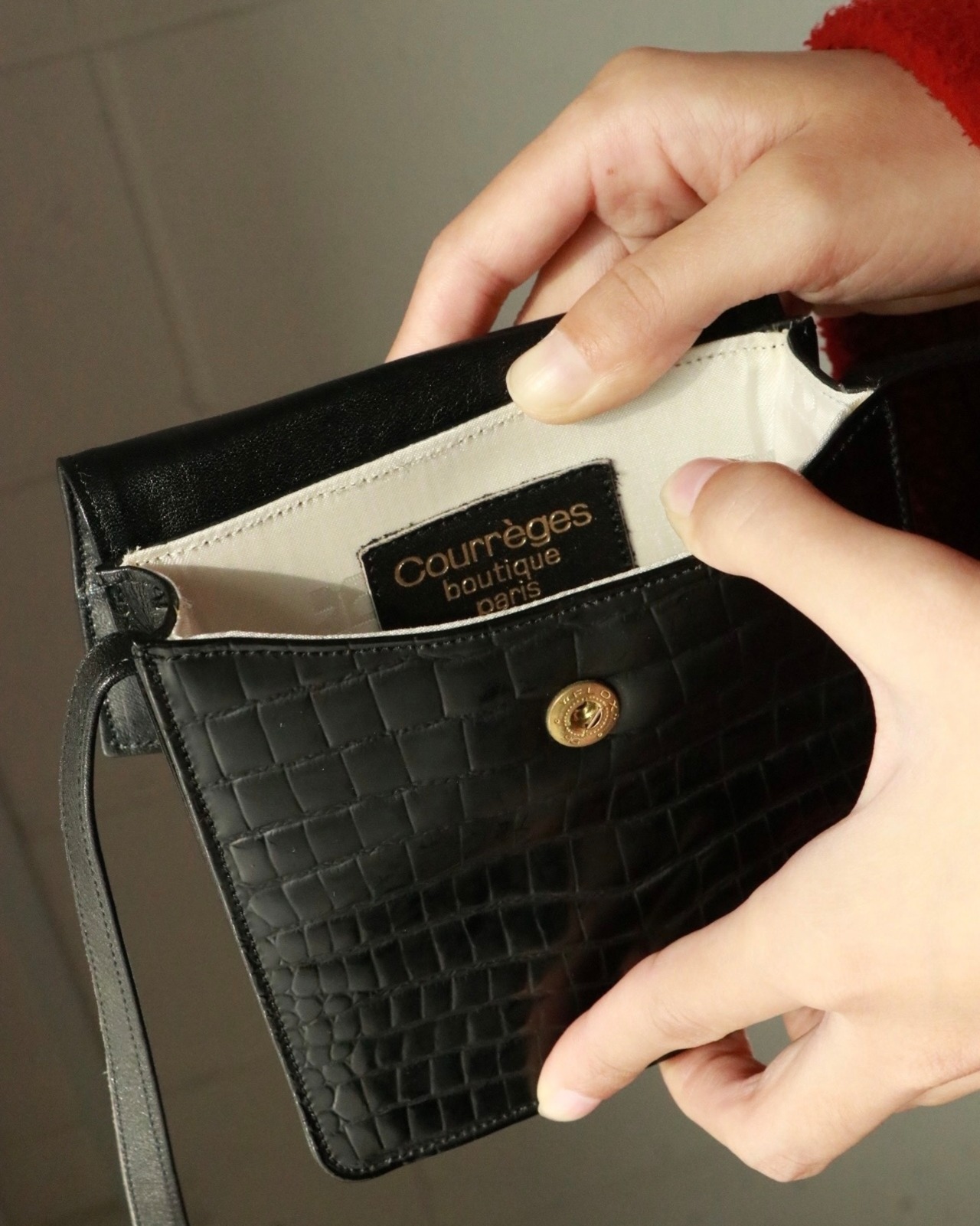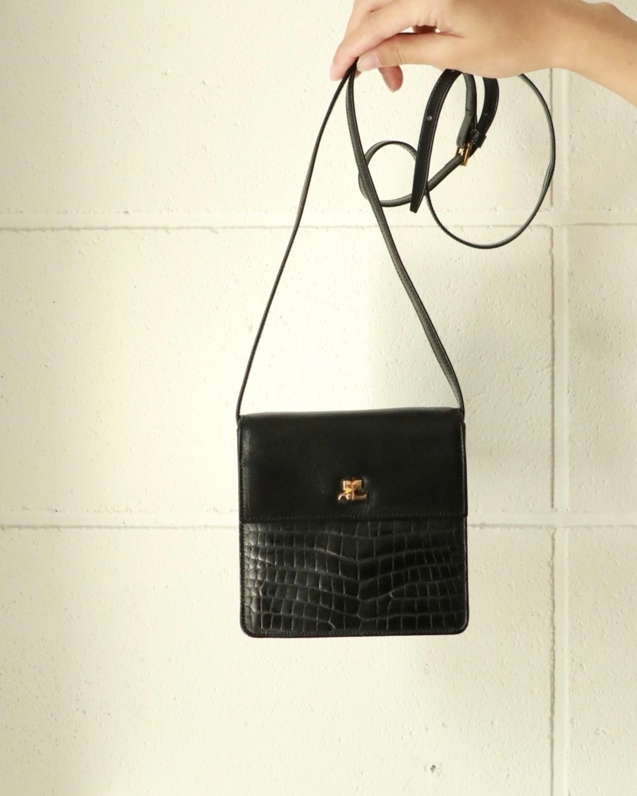 型押しのブラックボディーにゴールドのロゴが可愛いアクセントのミニバッグはオールドクレージュ。キュートなサイズ感に、全体的に綺麗なコンディション。ずっと愛用できるスペシャルな一品です。
