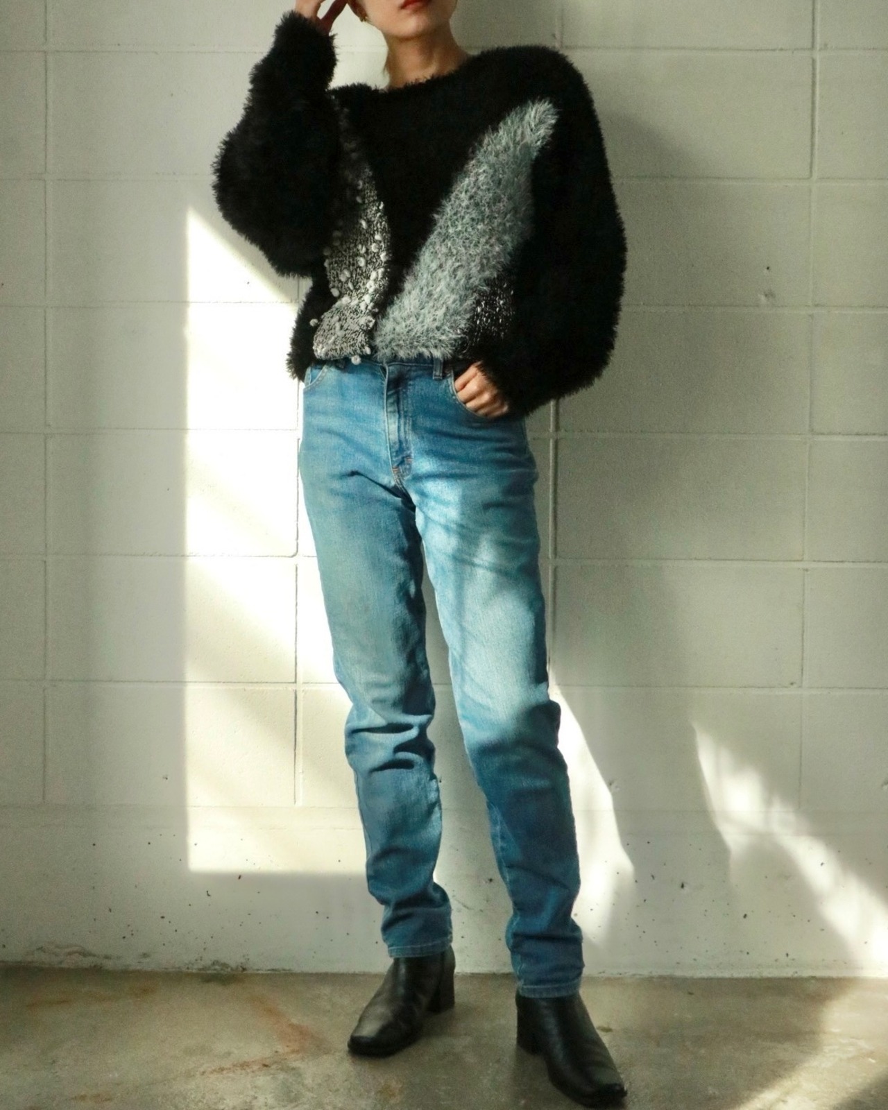 ブラックベースで合わせやすく、80'sらしいモード感が漂います。