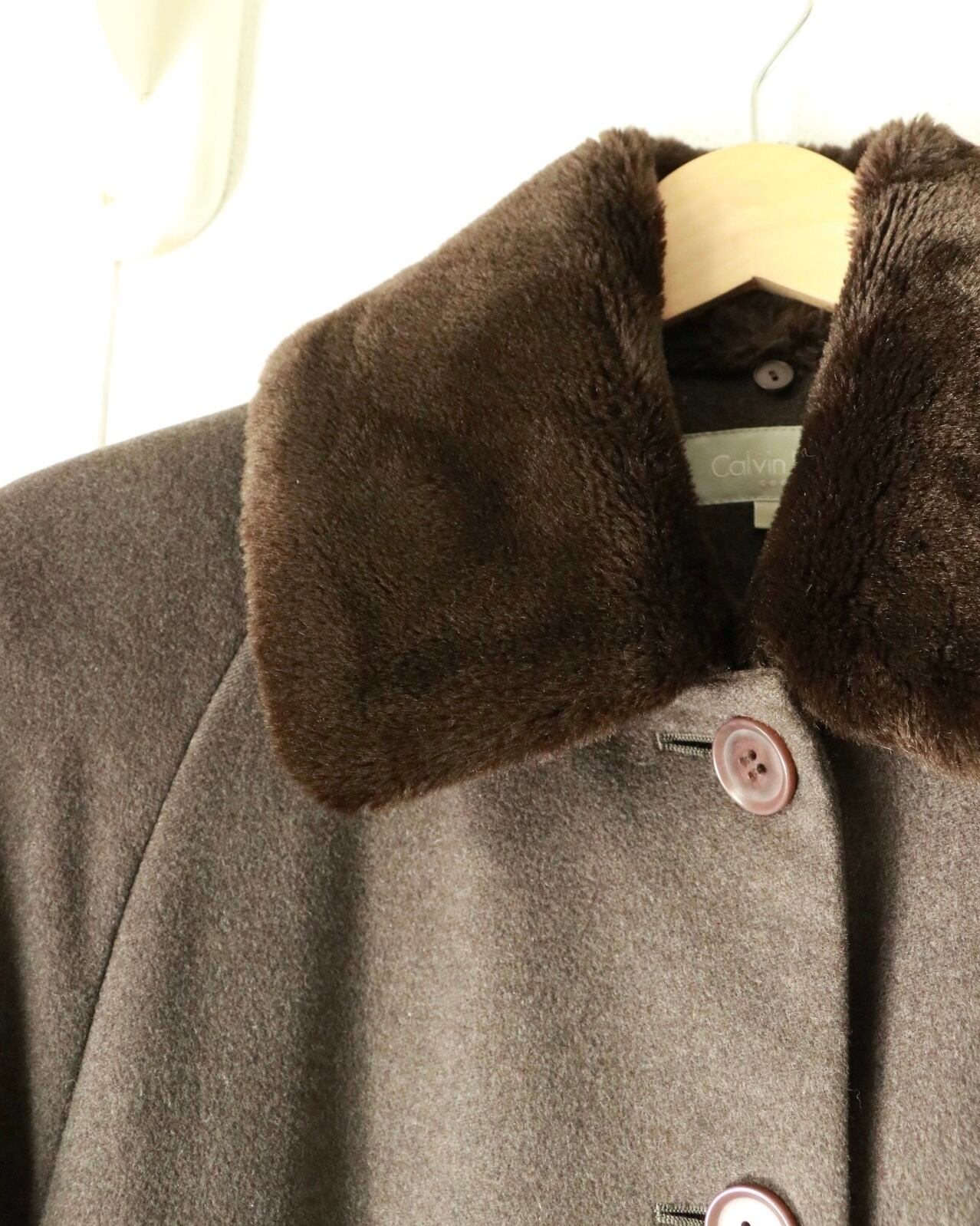 Calvin Kleinのブラウンカラーロングコートが入荷しました。ボリューム感のあるゆったりとしたシルエットでしっかりと長さのあるロングコートは、どんなコーディネートにも合わせやすい。クラシックなカラーでぐっとオシャレ度をあげてくれます。