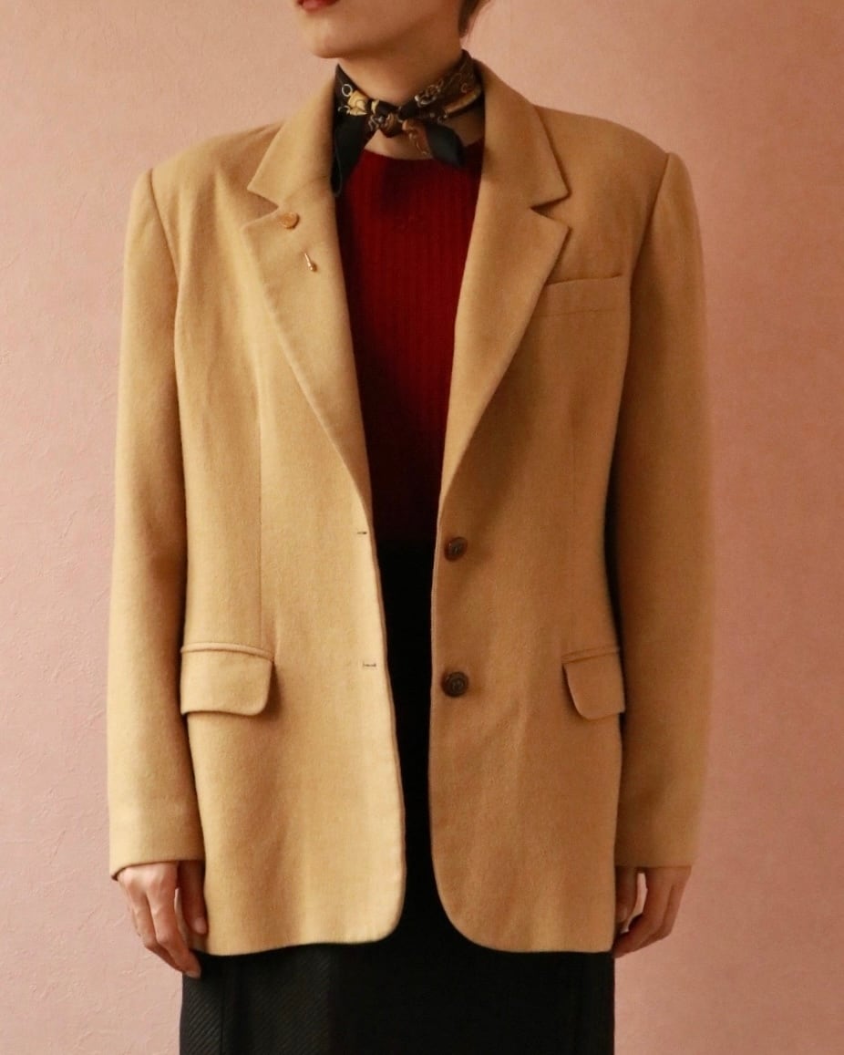 キャメル素材のクラシカルなジャケットが入荷。放湿性はウールの2倍とも言われているキャメルは軽く暖かい、機能性にも優れています。スタイリングにも使いやすいシルエットで着回しの効く一着。丈感も良くベーシックなジャケットは是非持っておきたい。おすすめの一着です。