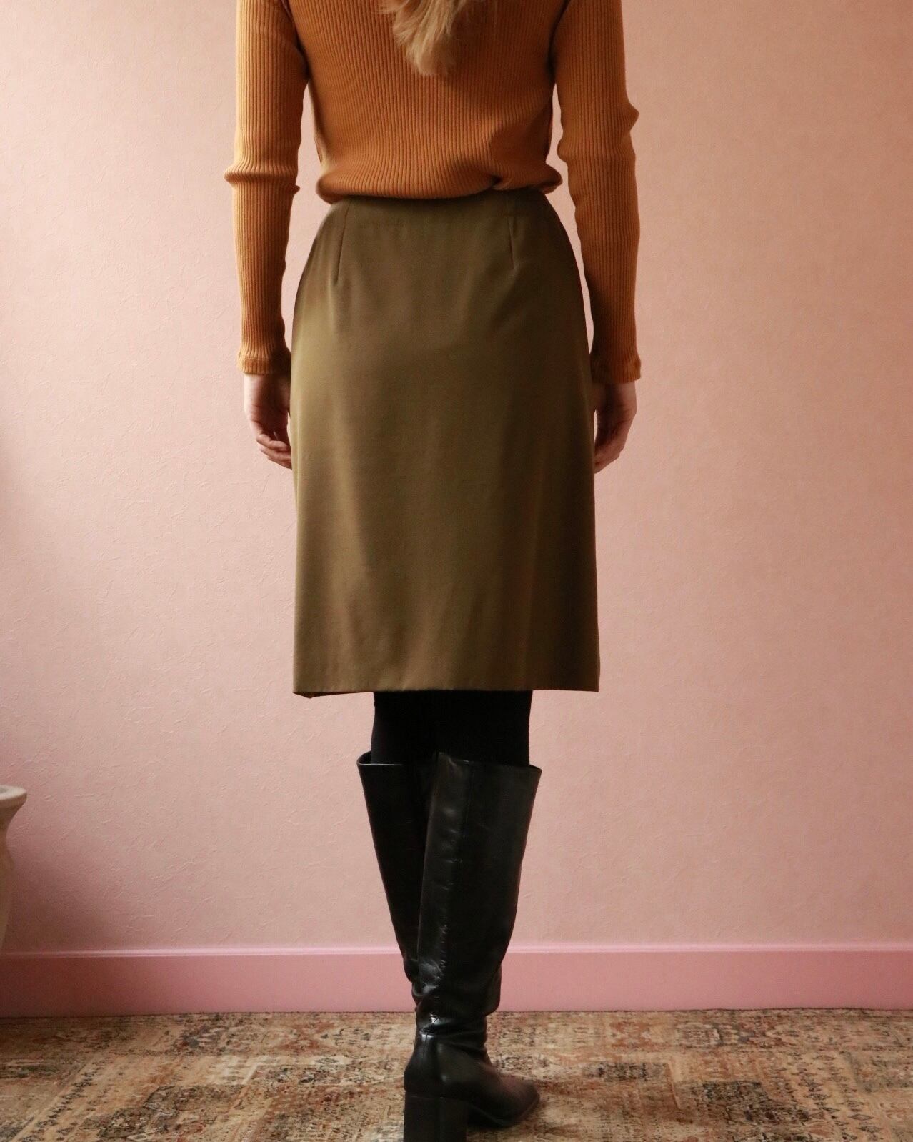 シックなカーキ色が好印象のCHANELスカートが入荷。