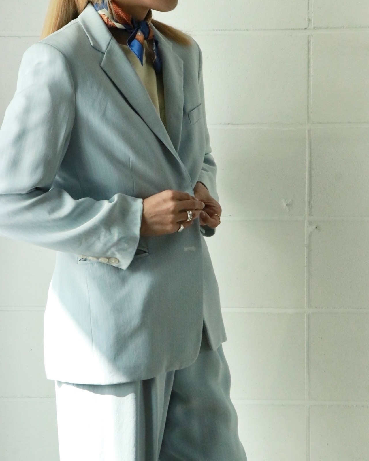 スカイブルーが爽やかな印象のジャケットが入荷。こちらはラルフローレンのもの。シルクの素材が肌馴染みがとても心地良い。ウエストの程よいシェイプがフォーマルな雰囲気にはまります。別売りのセットアップのパンツと合わせていただくのもおすすめです。