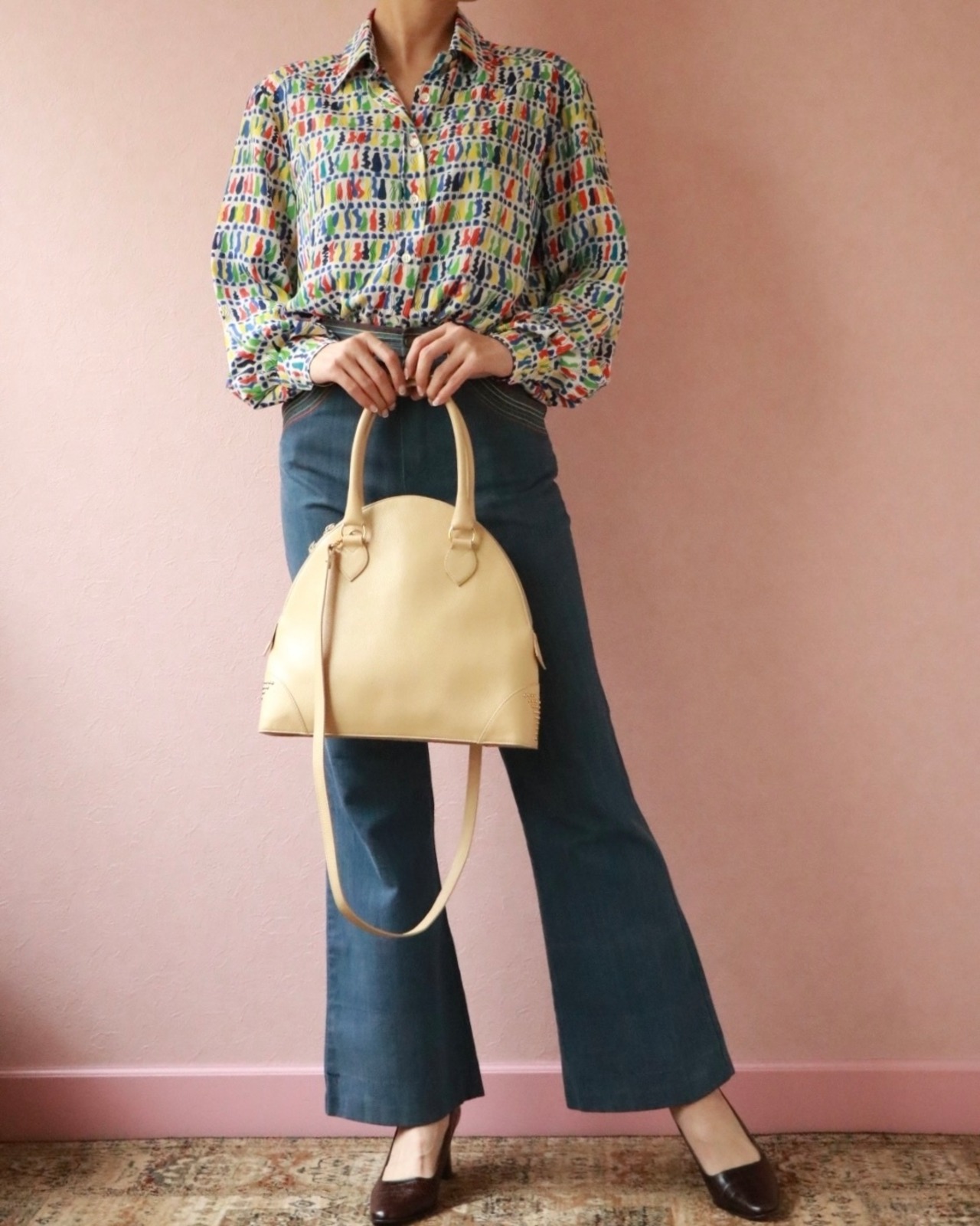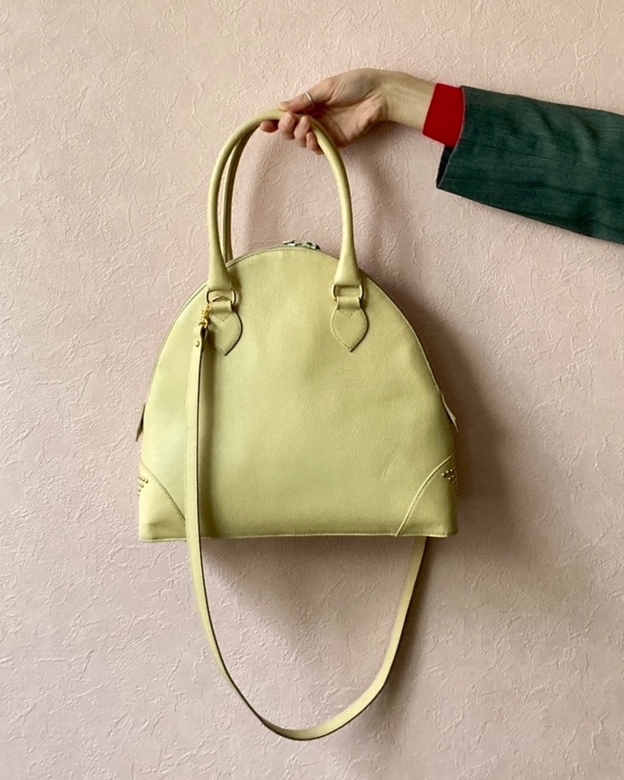 イブサンローラン、オフホワイトカラーのレザーバッグ。