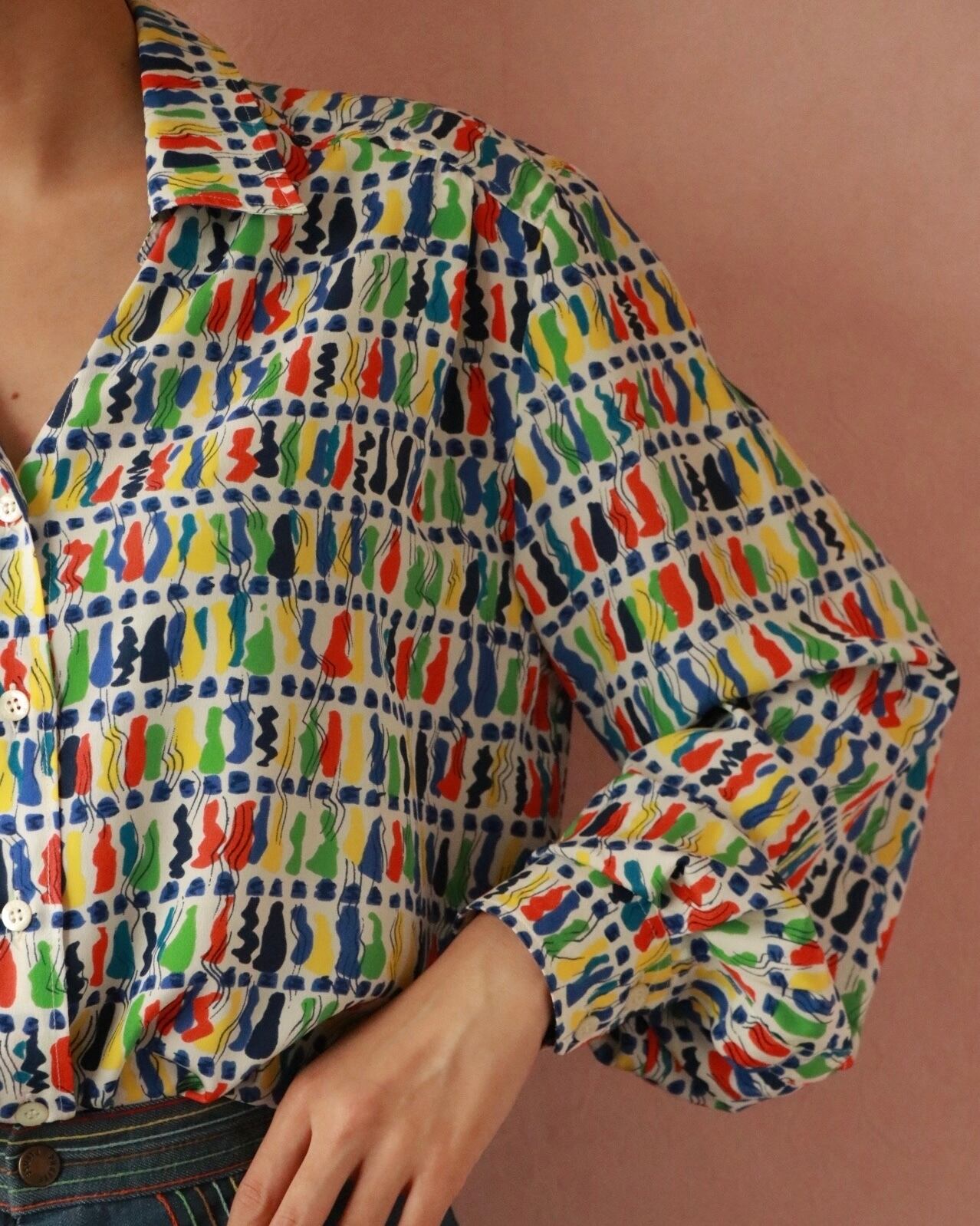 袖のシルエットや総柄でも細見えするセリーヌらしい女性らしいライン美◎