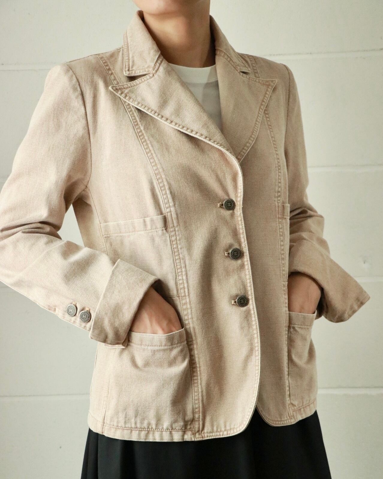 CHANEL pink beige denim jacket