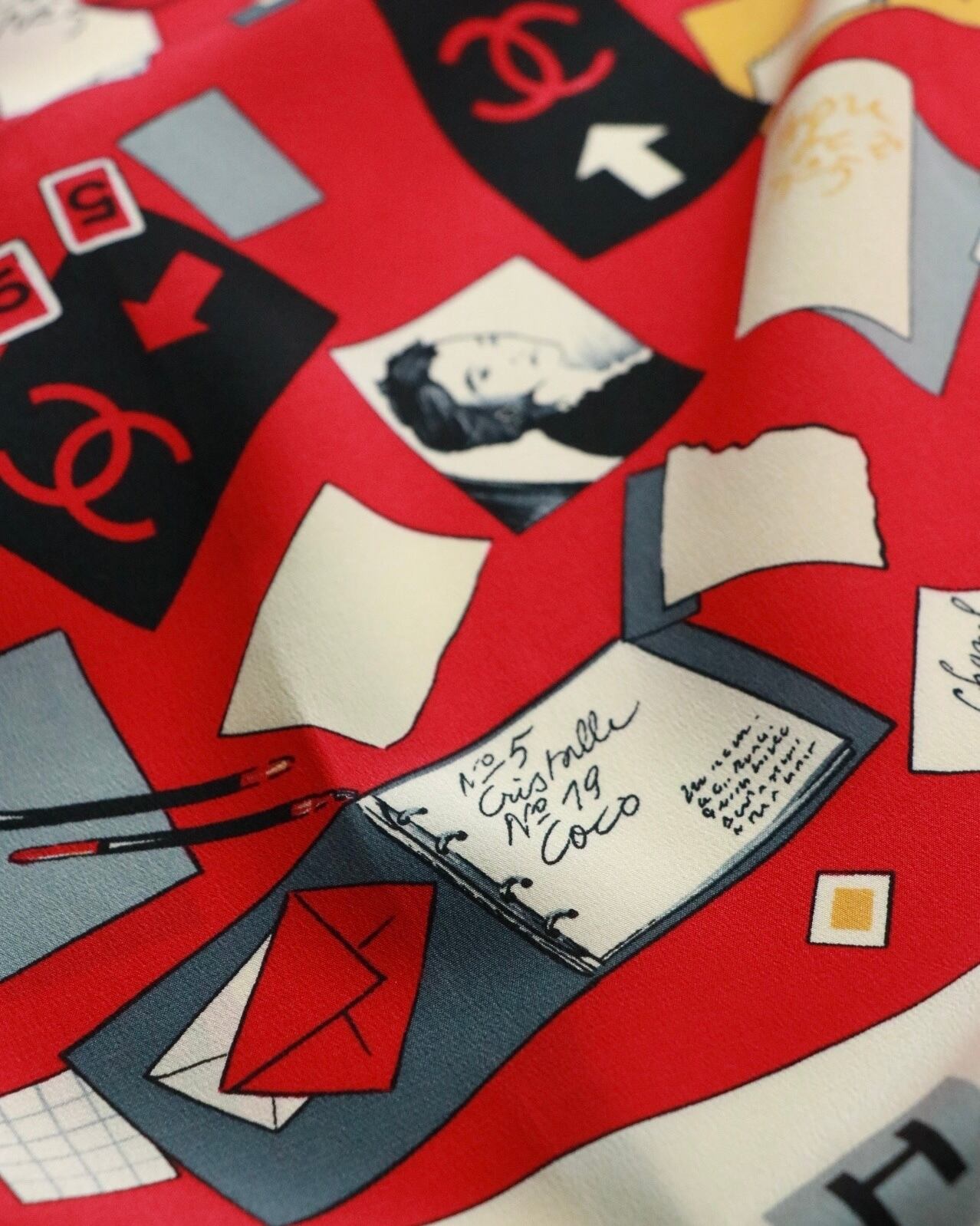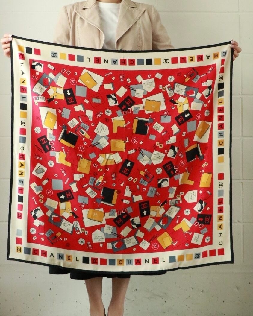 CHANEL red×white scarf