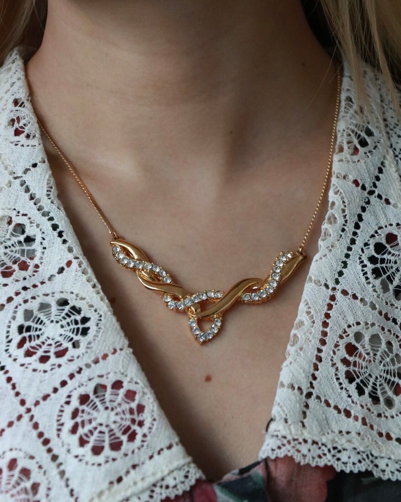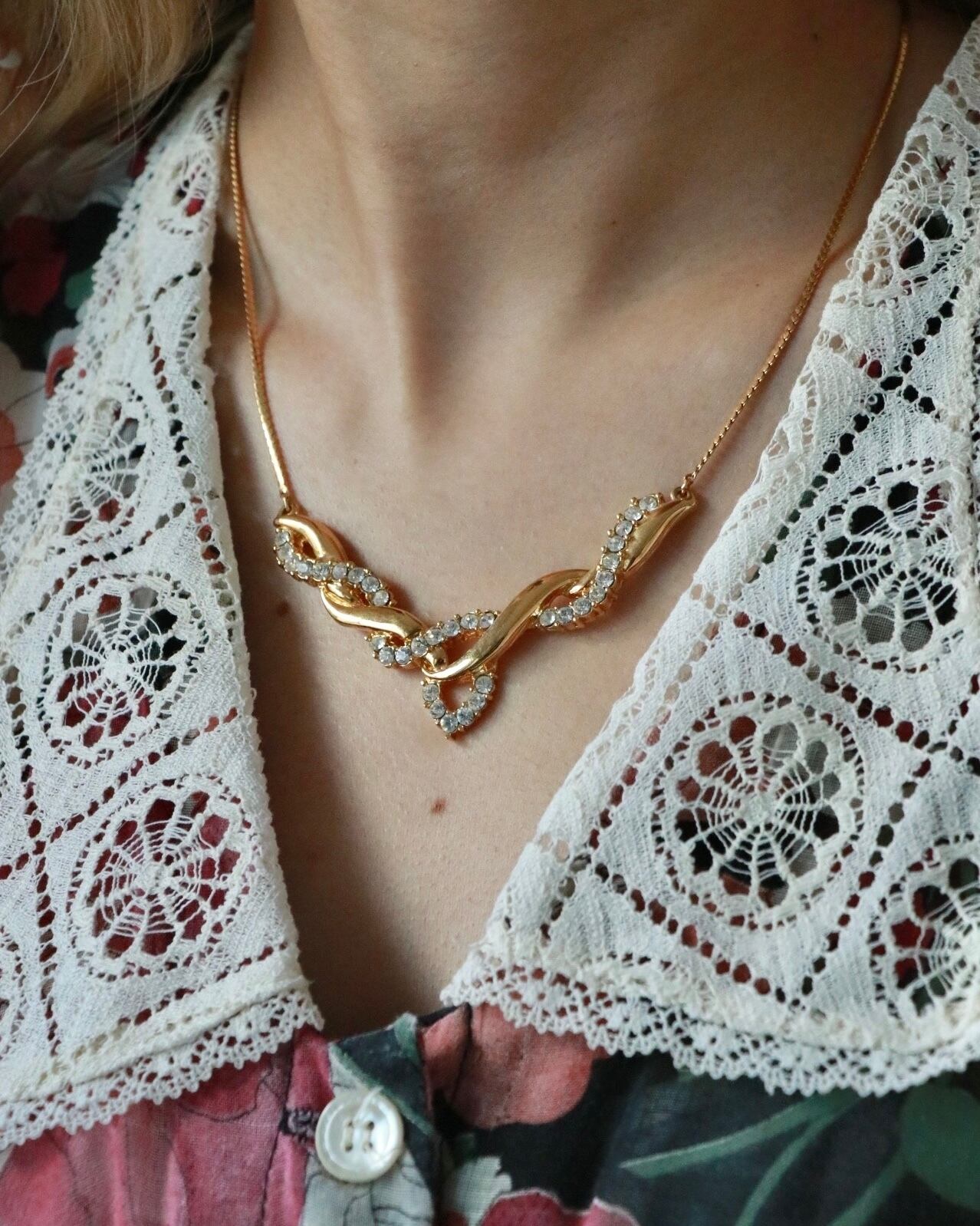 首元を華やかに彩るこちらのネックレスは、AVONのもの。