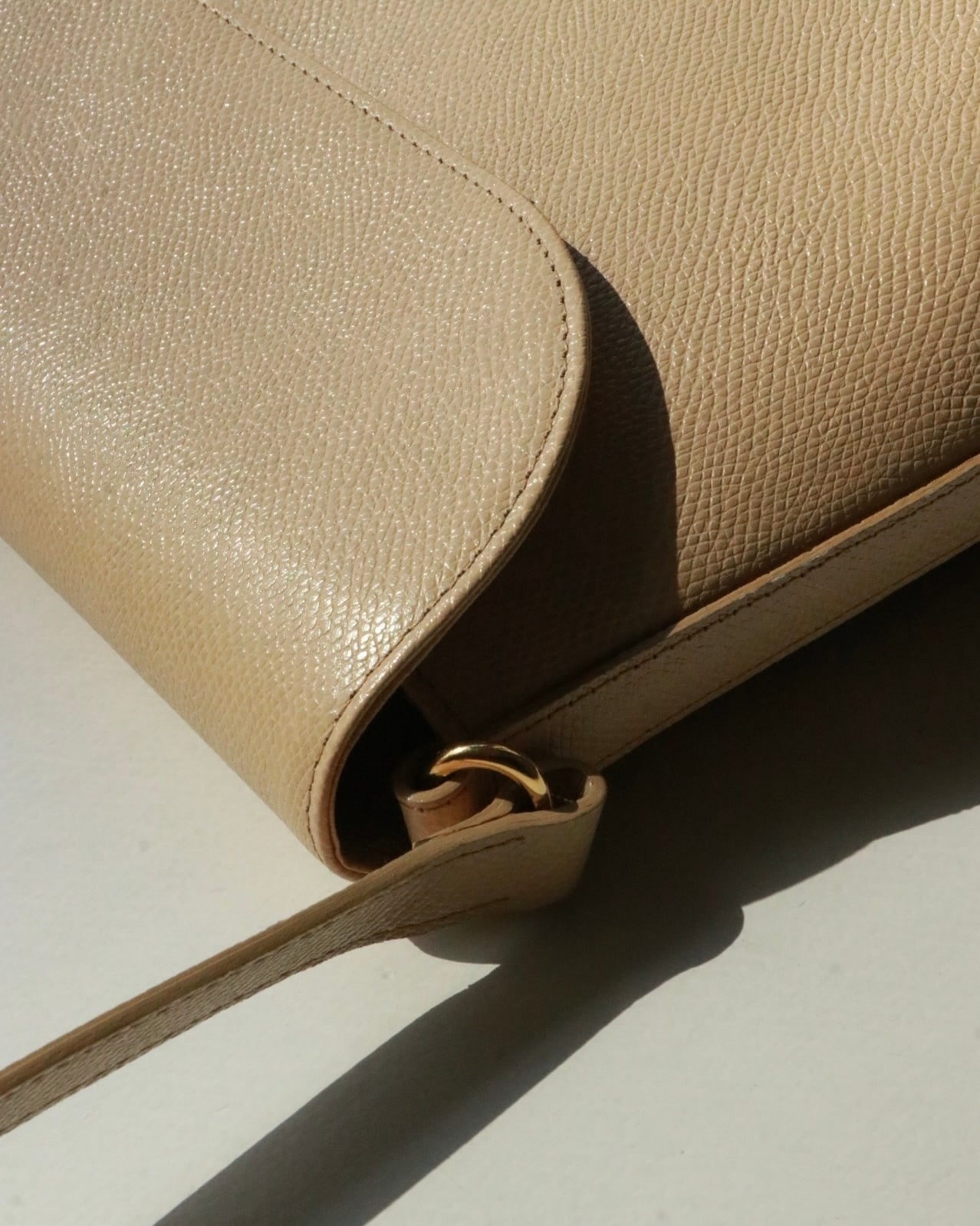 春になると人気の高まるベージュカラーのバッグはイヴ・サンローランのもの。