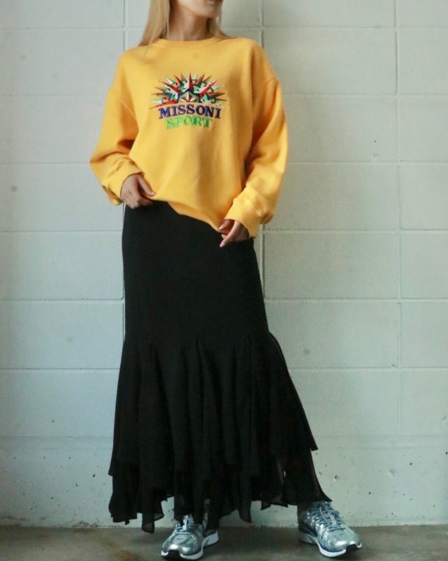 こちらはイエローベースにポップな色使いのロゴ刺繍に心躍るミッソーニ のスウェット。ゆったりとしたボディーがどんなボトムスともバランスよく着こなせます。刺繍スエットはプリントと違い、高級感もあり、末長く愛用します。