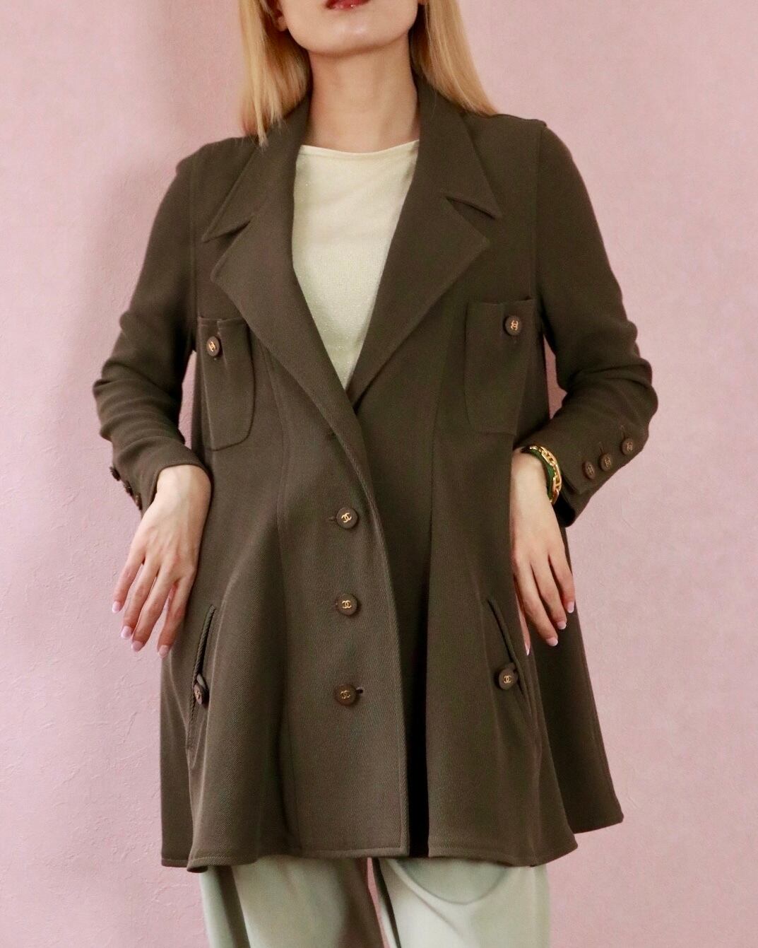 CHANELのジャケットが入荷。メンズライクなミリタリーカラーにフェミニンなシルエットが珍しい1着。シルエット、ディテールどこをとってもスペシャルなシャネルジャケットです。
