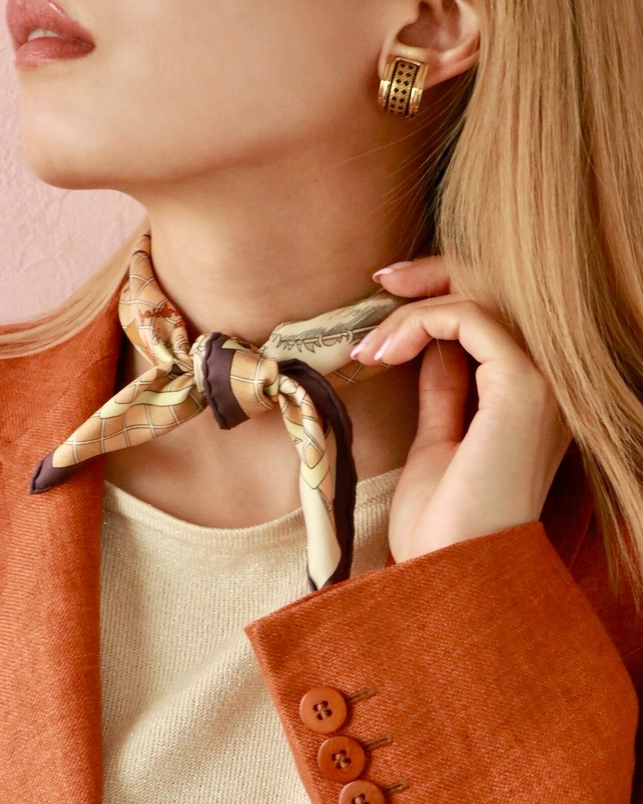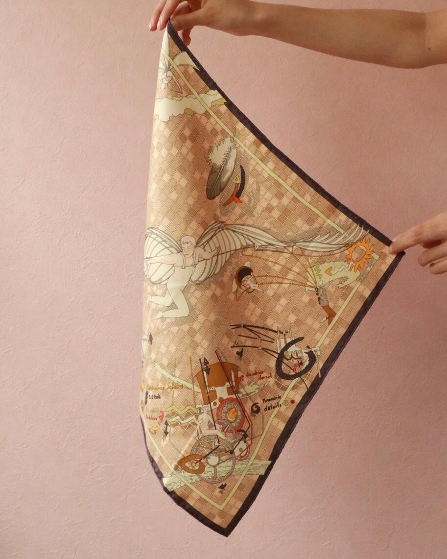 幸せが舞い込みそうなプリントが乙女心をくすぐる、エルメスのシルクミニスカーフ。