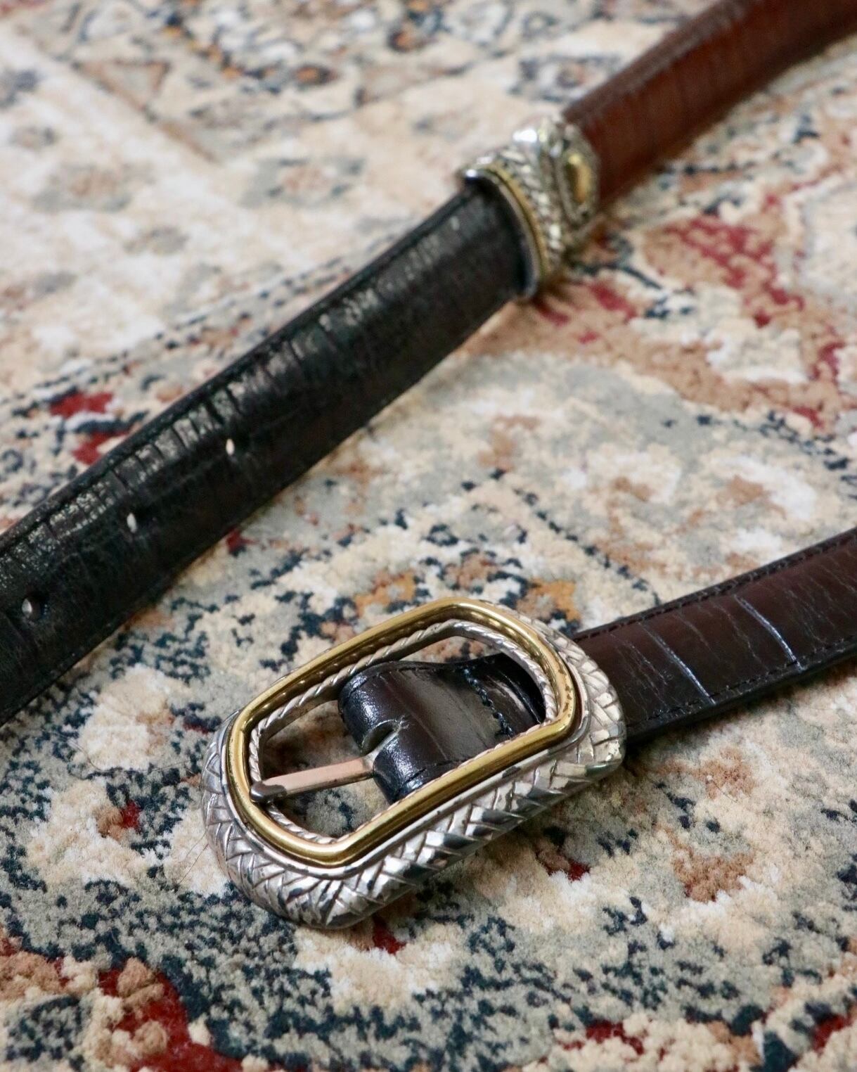 ベーシックカラーでも見つかりにくいセンスあるベルトは、ヴィンテージをチョイスするのがオススメ。上質なレザーと個性的なバックルがポイントのベルト。こちらは珍しいリバーシブルタイプでブラック×ブラウンの間違いないベーシックカラー。長く愛用したいアイテムです。