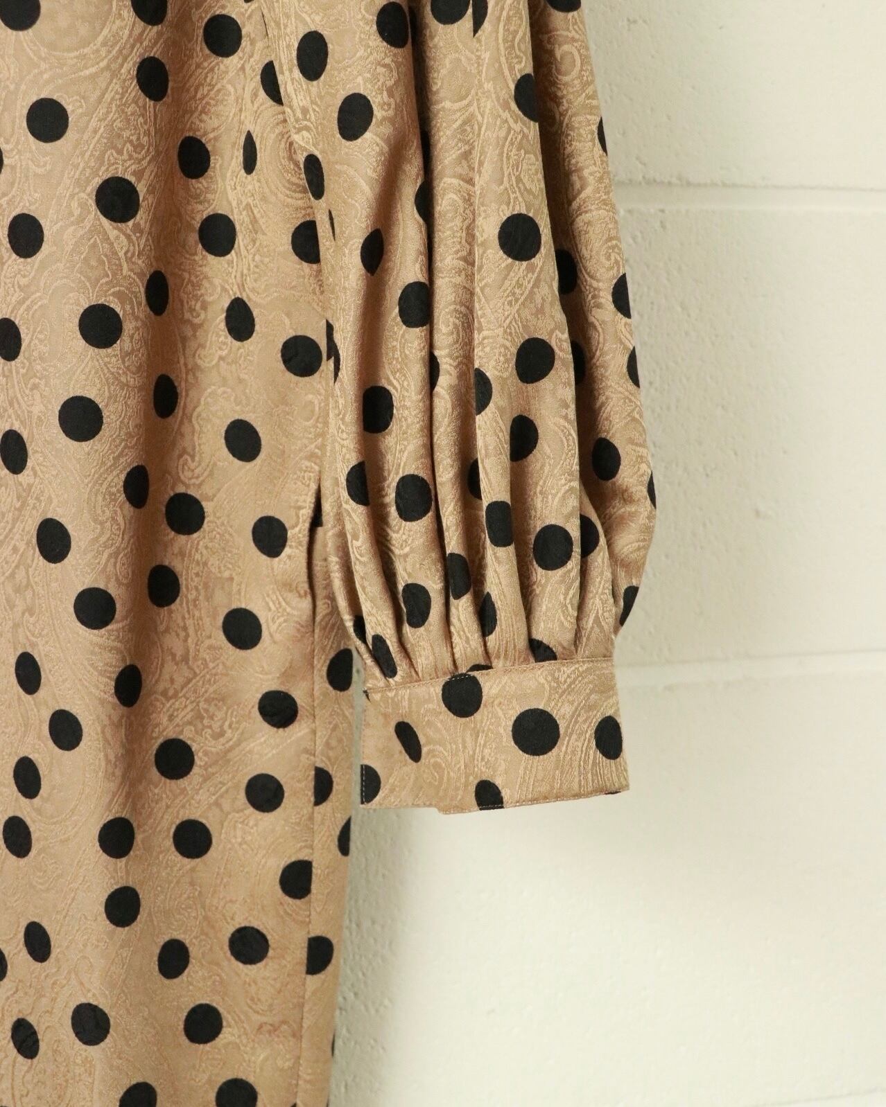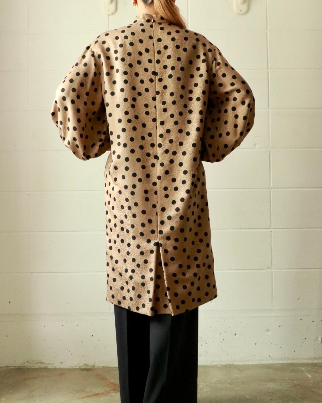 シンプルなドットのワンピースが入荷。パフスリーブデザインが大人フェミニンになれる一品です。一枚で着るのはもちろん、パンツやスカートとレイヤードするのも◎