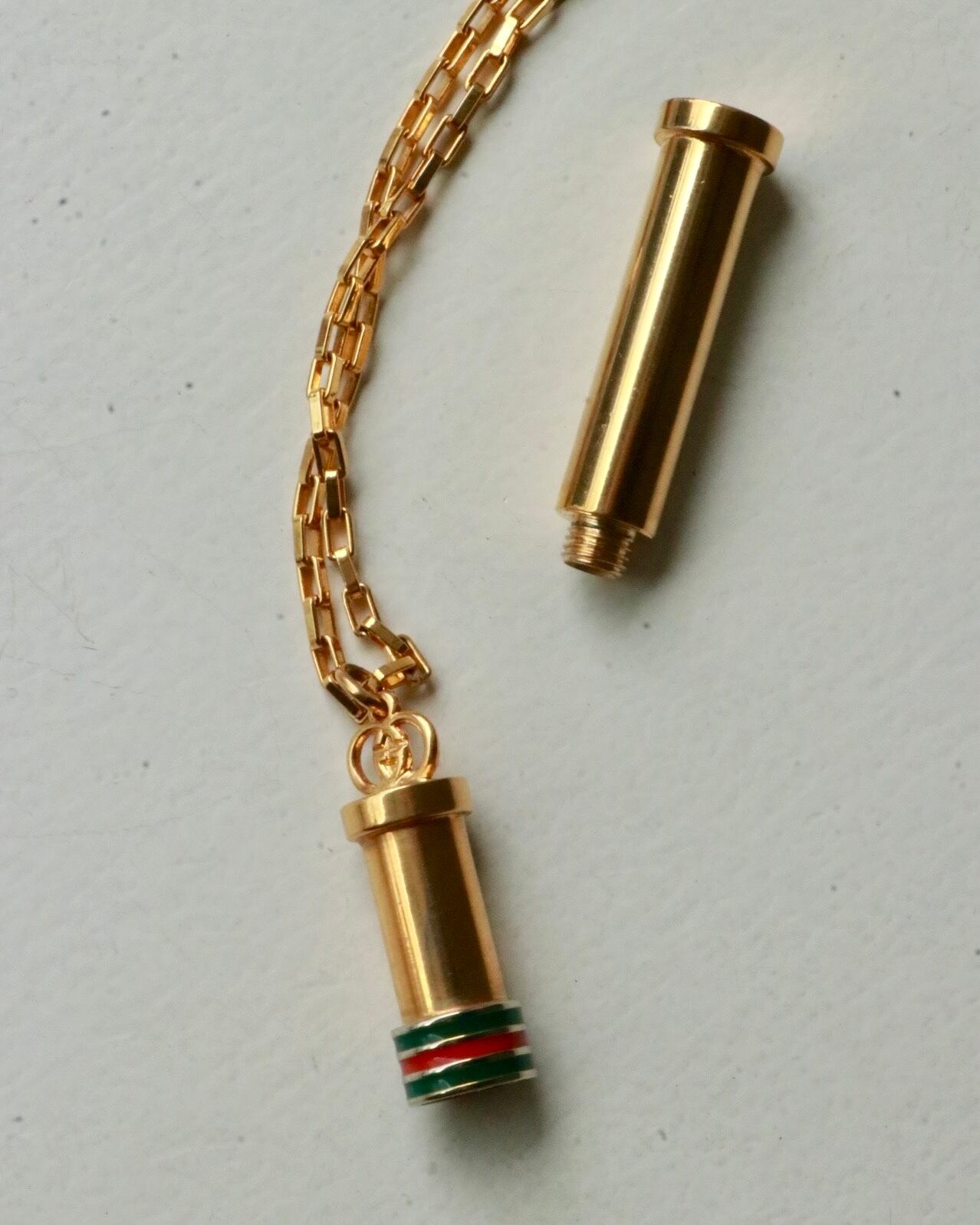 一見、笛のようなモチーフは蓋が開くのでパフュームボトルに。