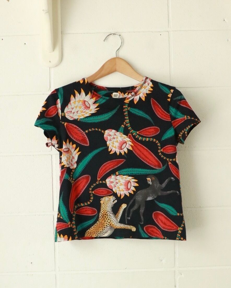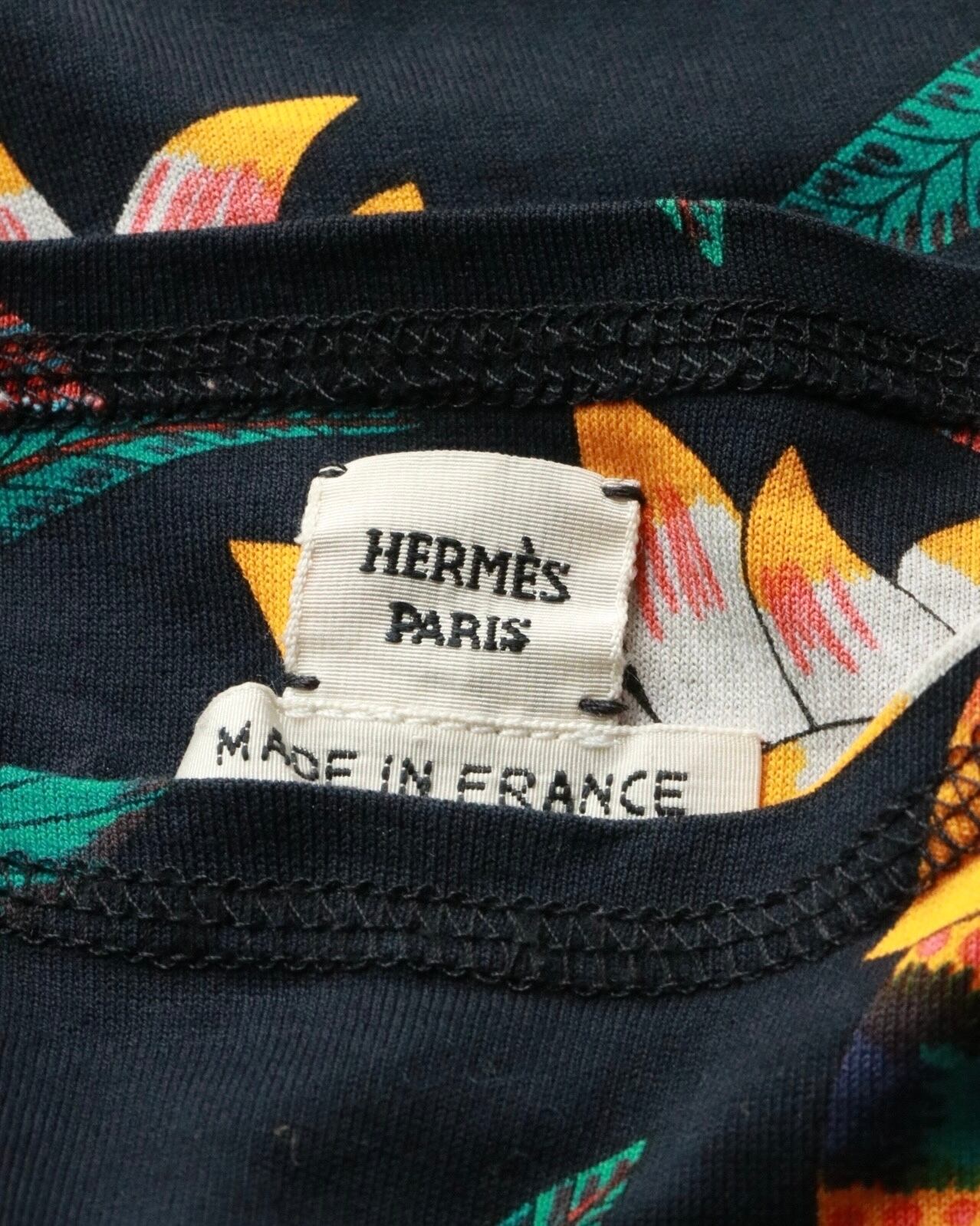 華やかなプリント柄が引き立つこちらのトップスは、HERMESのもの。