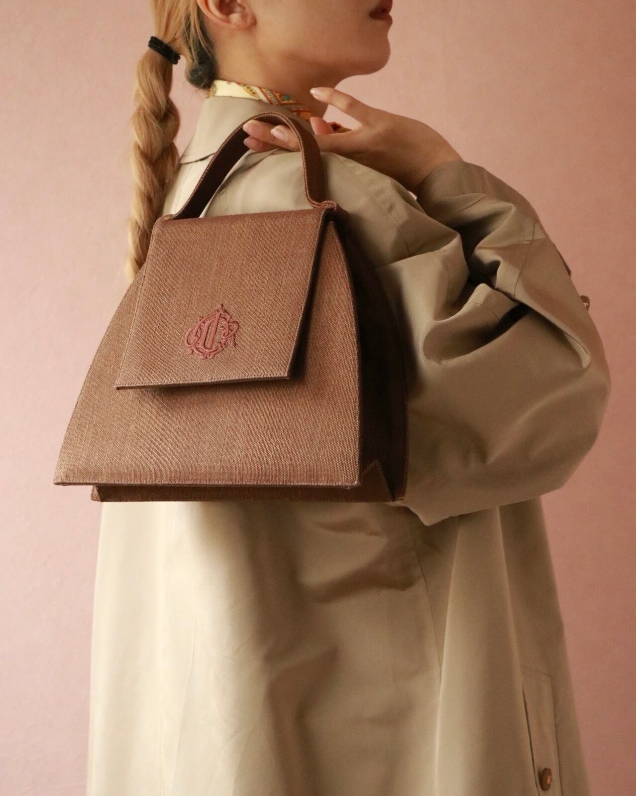 三角型のフォルムがとても愛らしく、布地でレザーバッグより軽量なのも嬉しい。