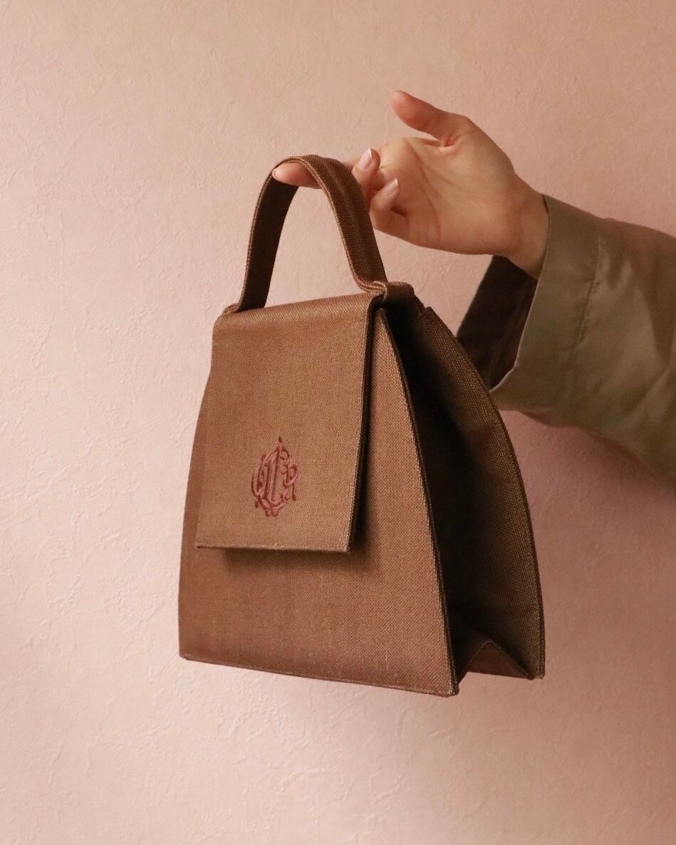 合わせやすいブラウンカラーに同系色のロゴ刺繍が上品なアクセント。