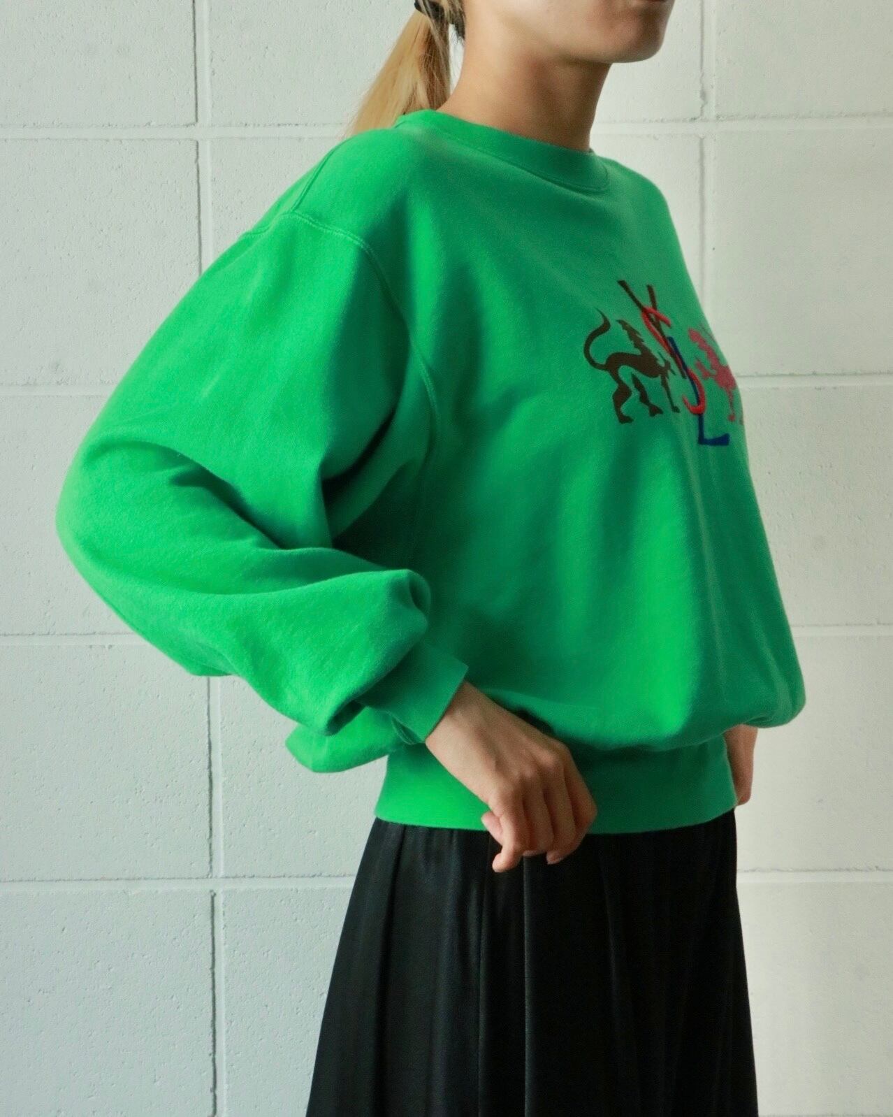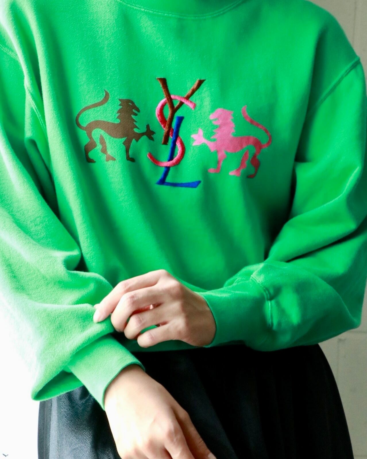 鮮やかなグリーンのYSLのスウェットが入荷。