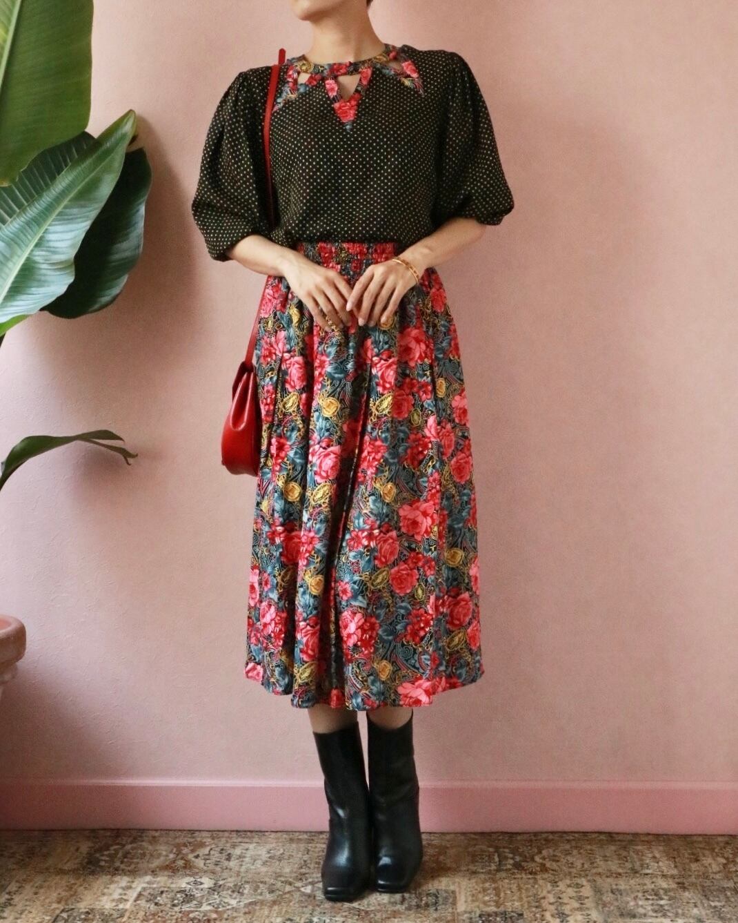 ロサンゼルス出身のデザイナーDiane Freisが1980年代に香港で設立したブランドです。上質なシルク100パーセントでドット柄×フラワー柄が特徴的。パターンが少量生産だったため、希少価値も上がっておりコレクターも多いブランドです。別売りのスカートとの合わせもおすすめです。