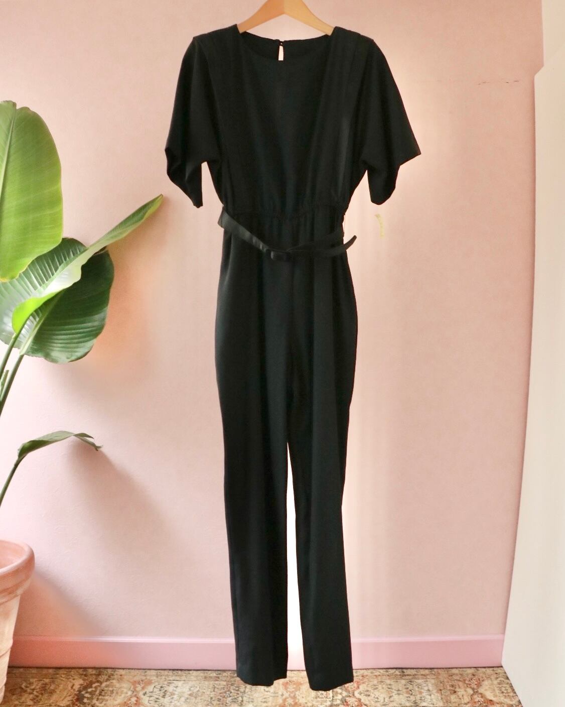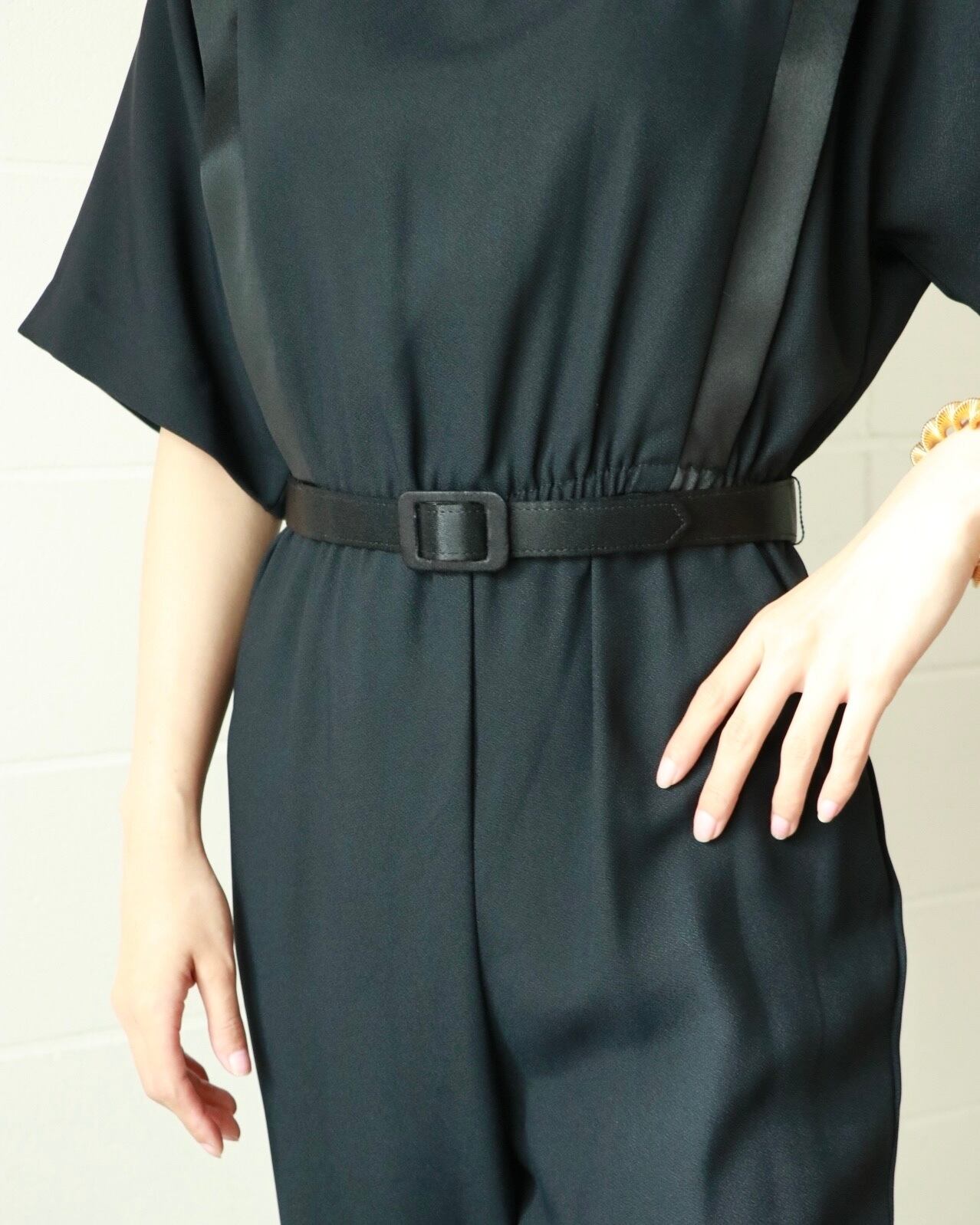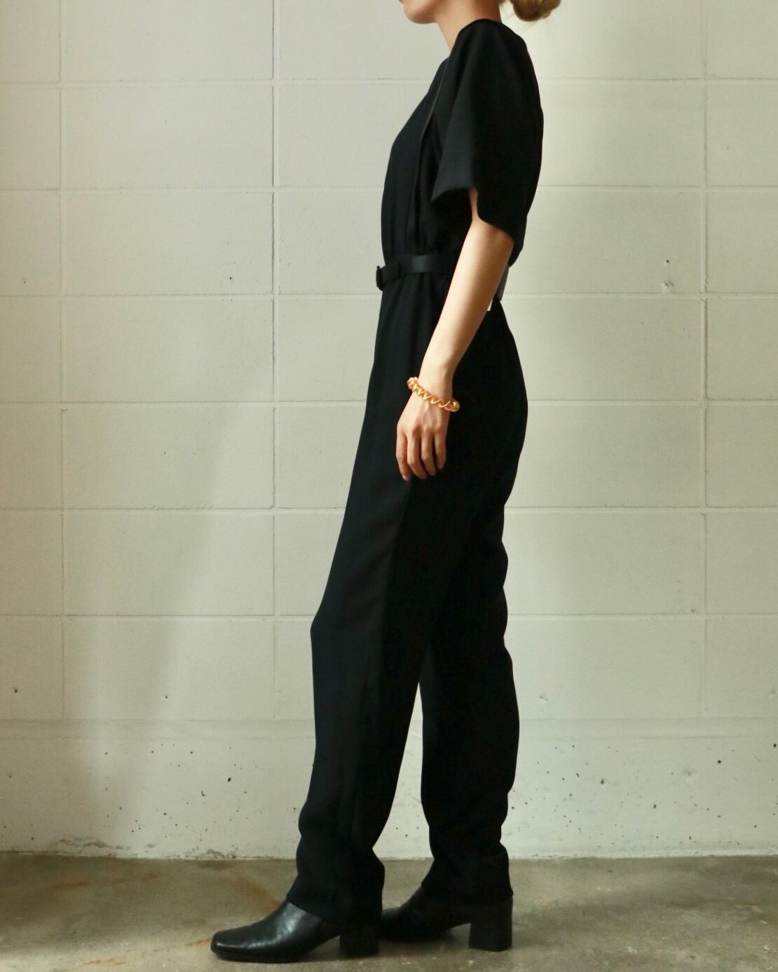 難易度が高そうなイメージのオールインワンも、ブラックをチョイスすればあっという間にモードな着こなしが完成します。こちらはデッドストックのもの。ウエストにスカーフアレンジをしてこなれ感を演出するのもおすすめです。