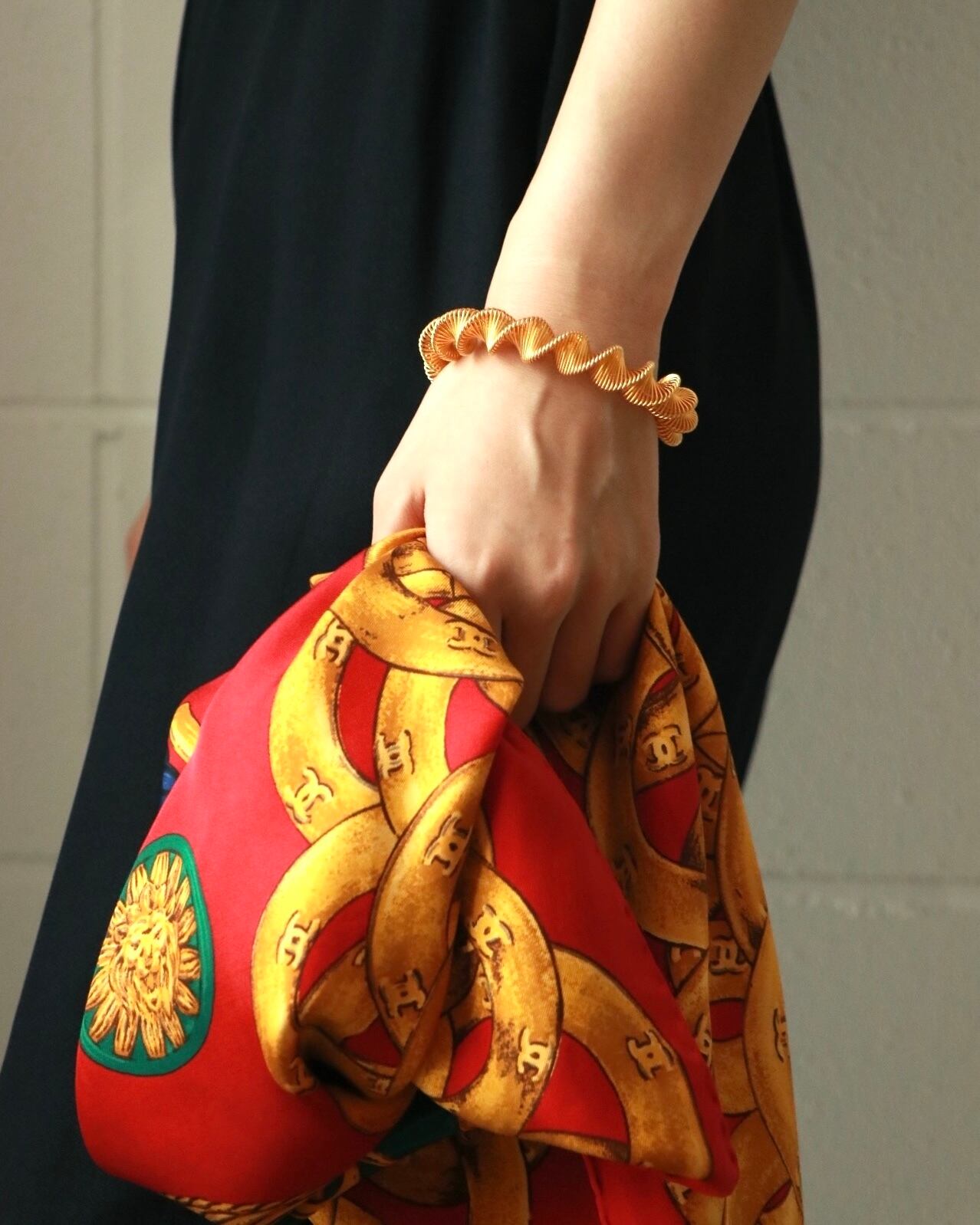 大判なので首にはもちろん、頭につけたり、ベルトのようにつけたりと様々なアレンジが楽しめます。