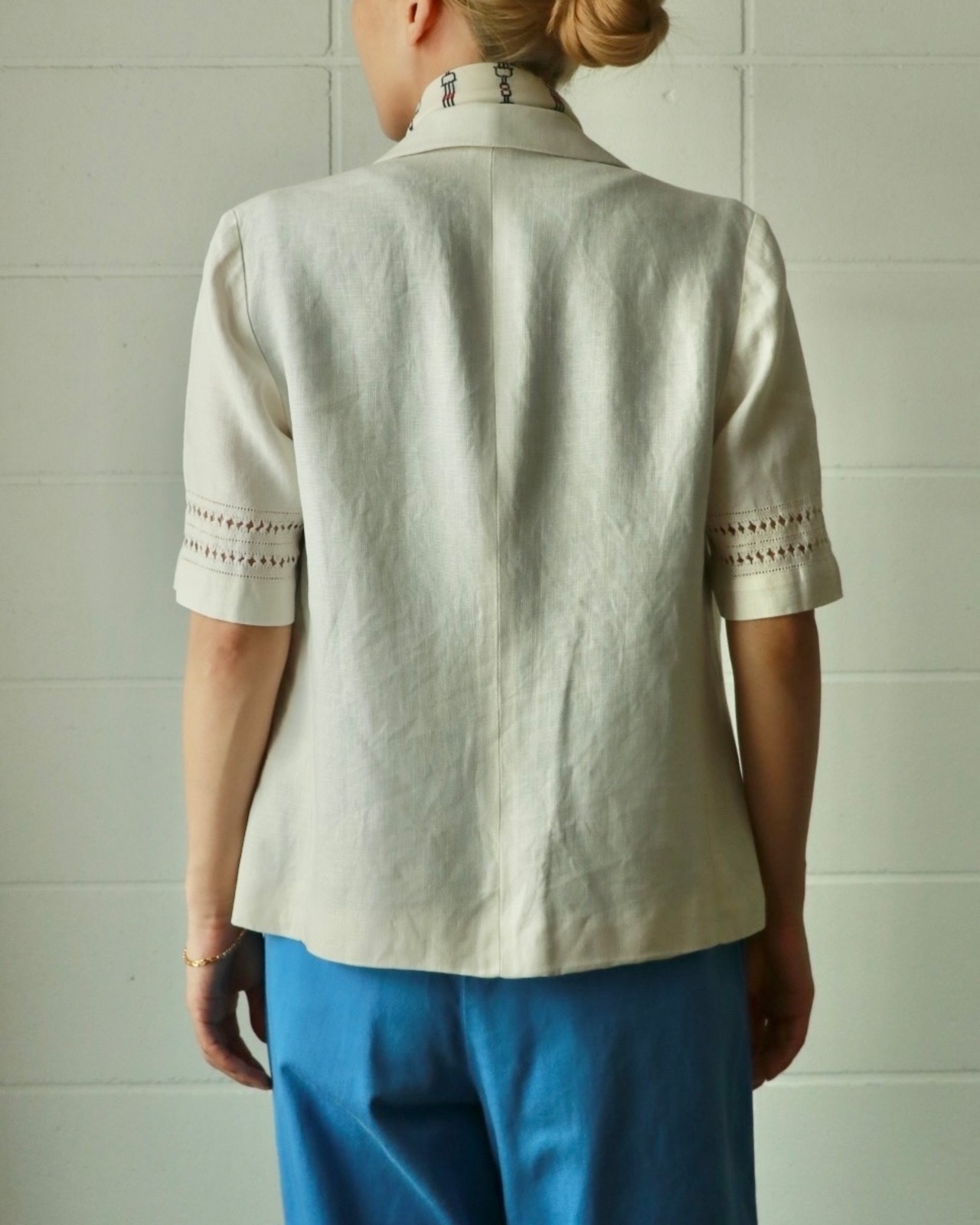 めずらしい半袖タイプのセリーヌジャケットが入荷。トリオンフのボタンがポイントでなんとも可愛い。リネン素材で春夏のシーズン長く着れるのも嬉しいです。普段のコーデにさっと羽織るだけで背筋がすこしのびた感覚になるスペシャルな1枚です。