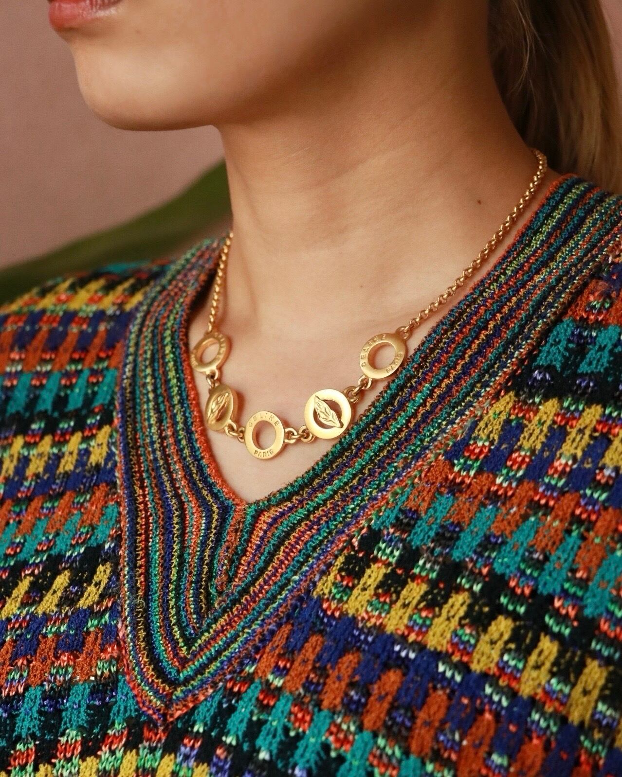 CELINE matte gold circle necklace