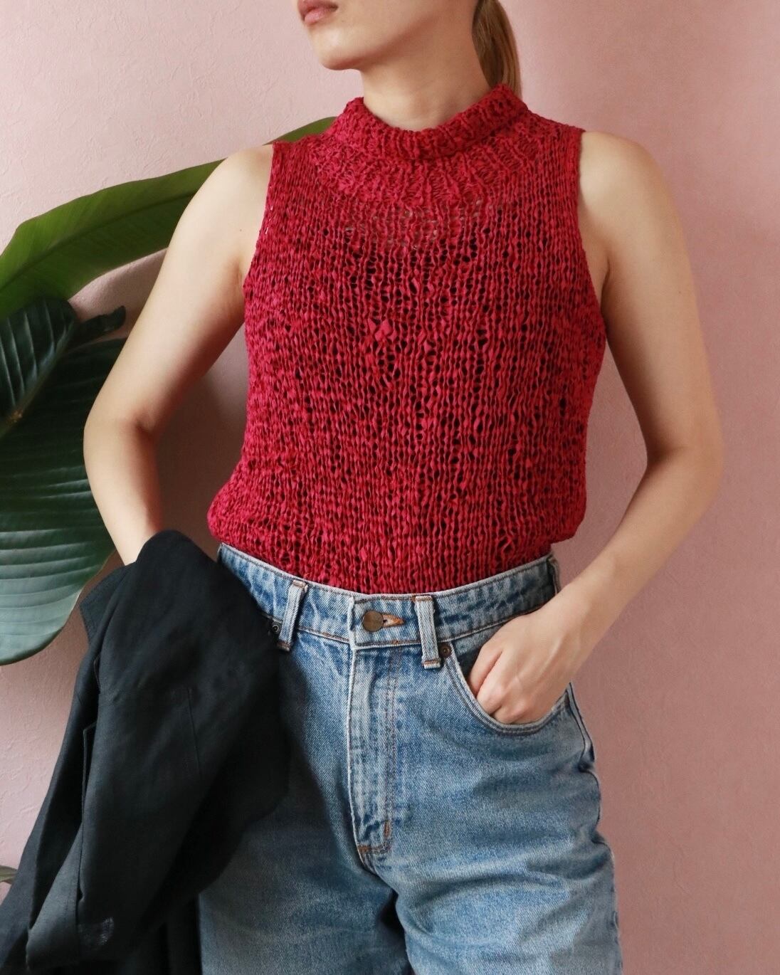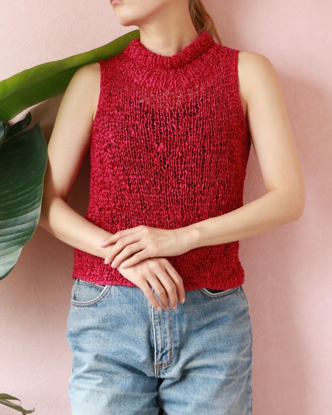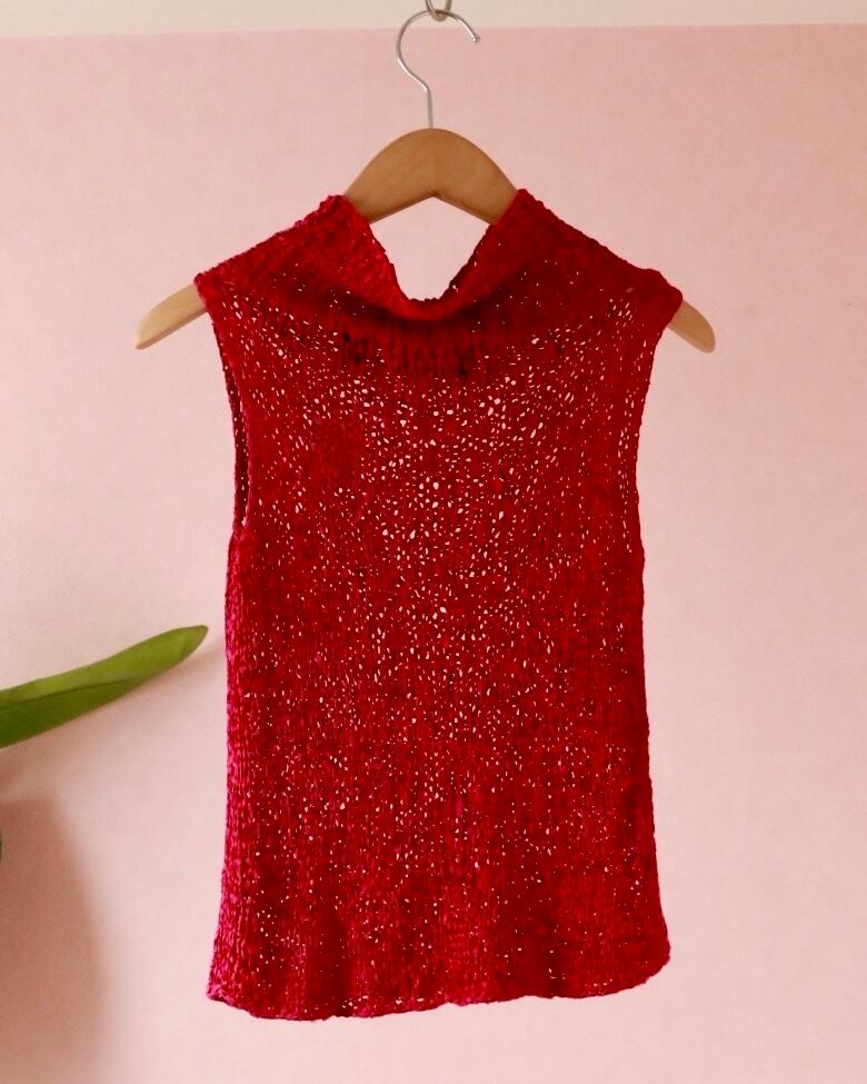 マットな質感のシルク生地が編み上げられ、モックネックにノースリーブのシンプルなデザインを惹き立たせる。夏は涼しく一枚で、冬はニットのインナーにも。季節問わず、活躍します。