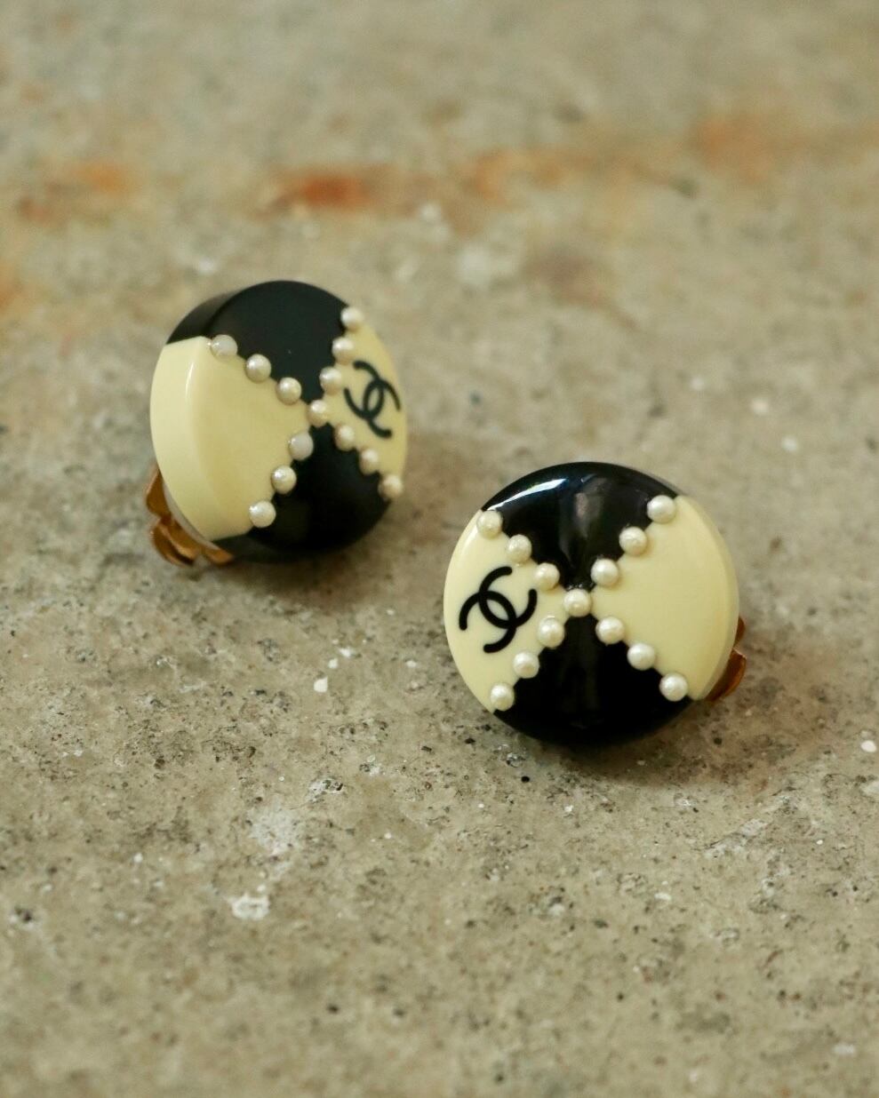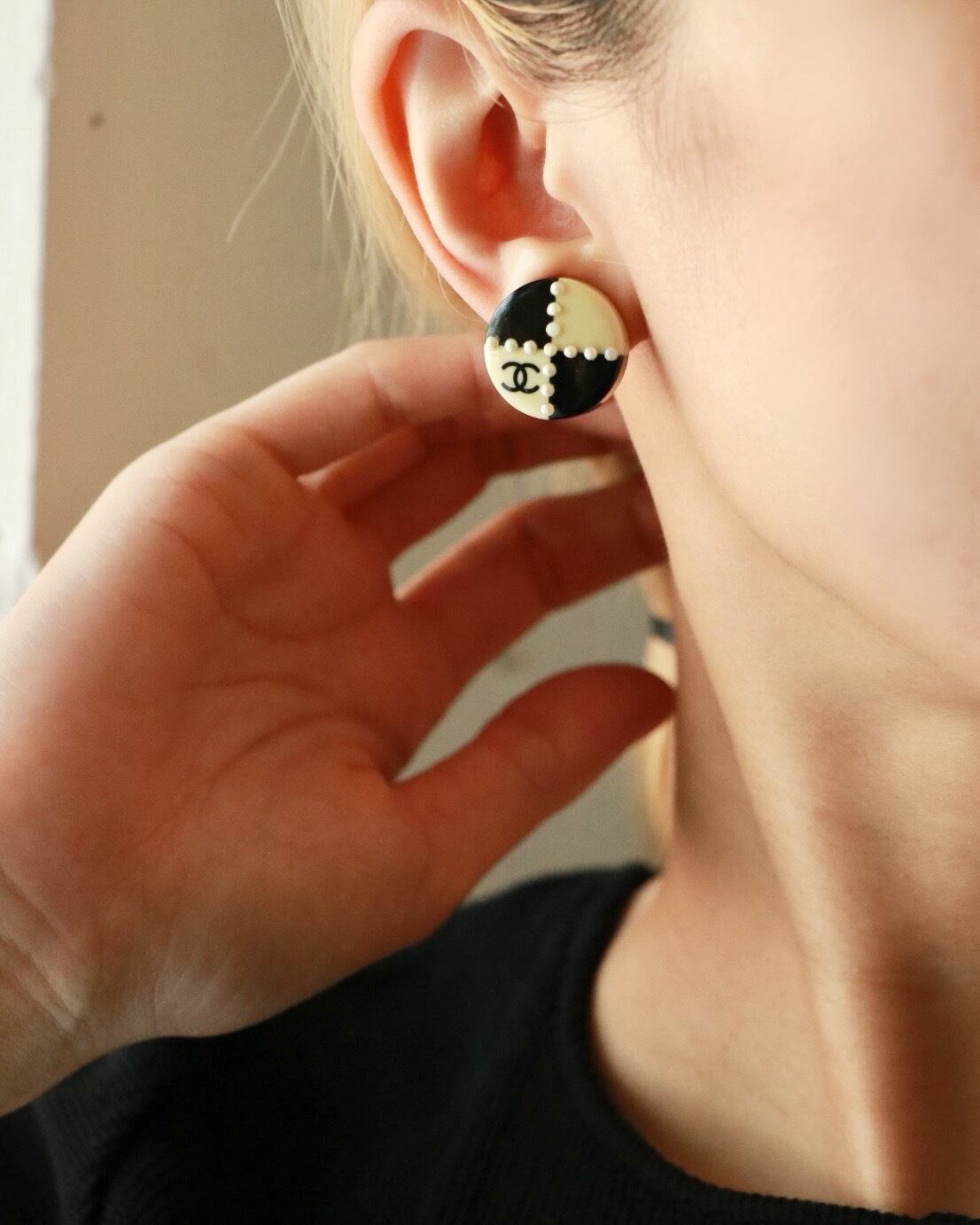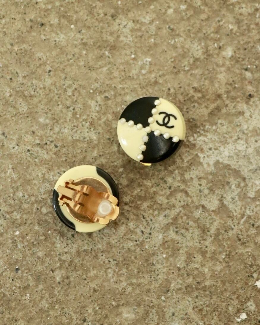 CHANEL block check round earrings