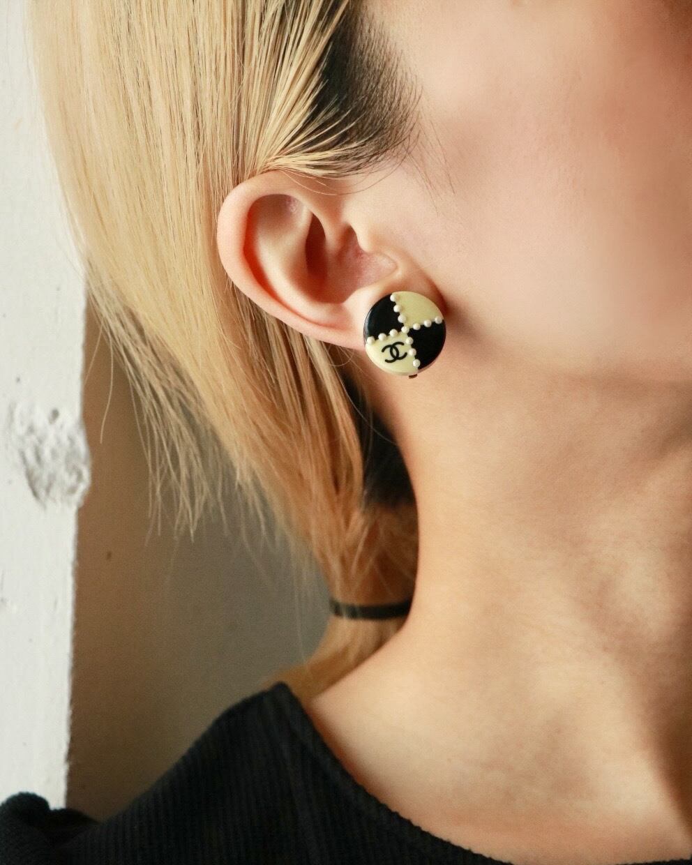 思わず"可愛い"と言ってしまうブロックチェック柄とココマークが、自慢のCHANELのラウンドイヤリング。