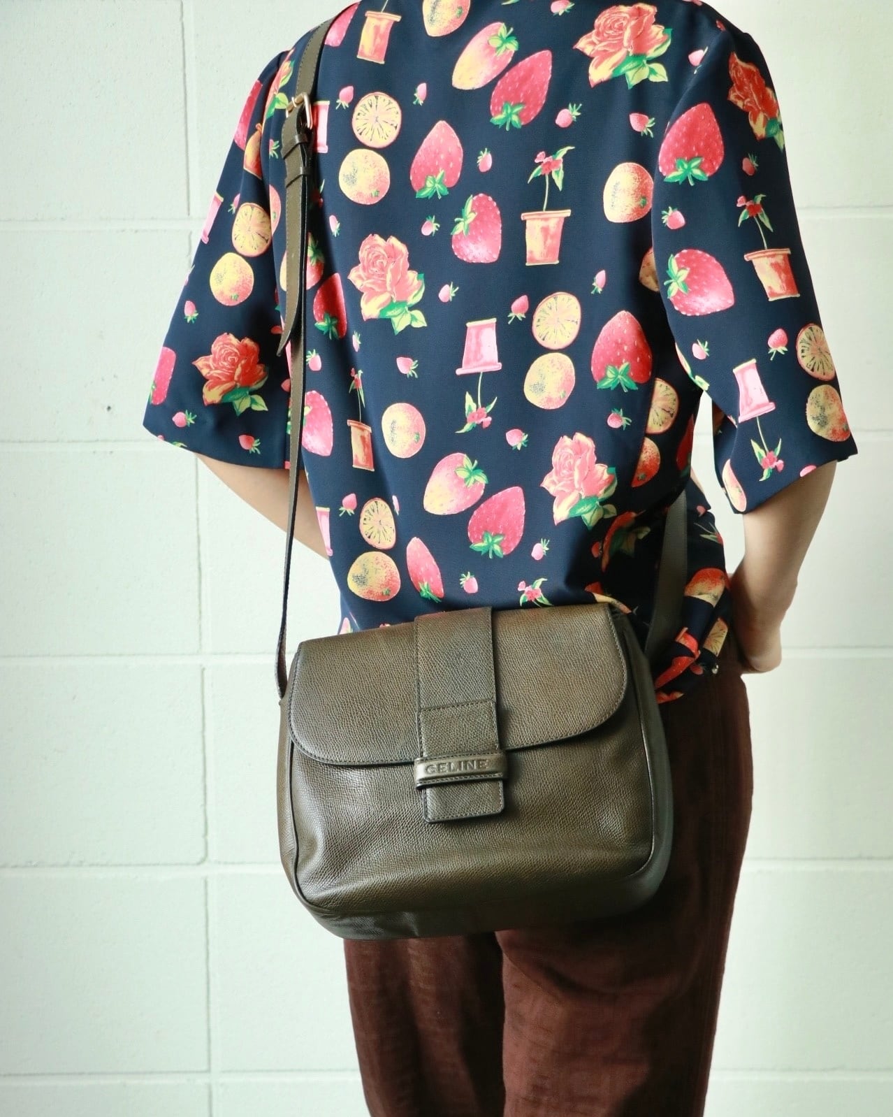 ロゴは型押し、余分なものは削ぎ落とされたかのようなミニマムなデザインと落ち着いた上品なカーキの色味。金具のないデザインなのでカジュアルスタイルにも合わせやすく収納力もしっかり!
