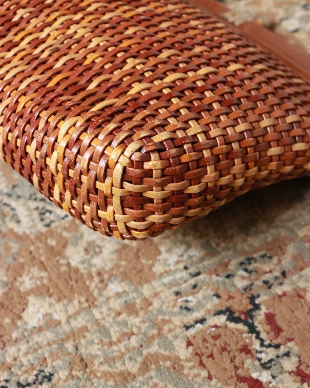 カゴバッグのような見た目の爽やかさがありつつ、レザーならではのタフさも兼ね揃え、長財布もはいる収納力とガバっと開く使い勝手の良さも嬉しいポイント。
