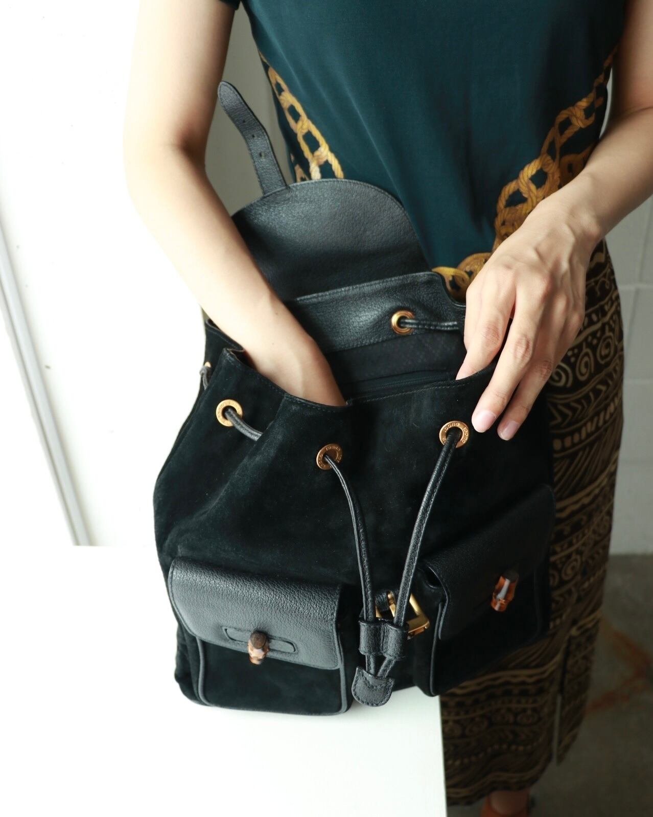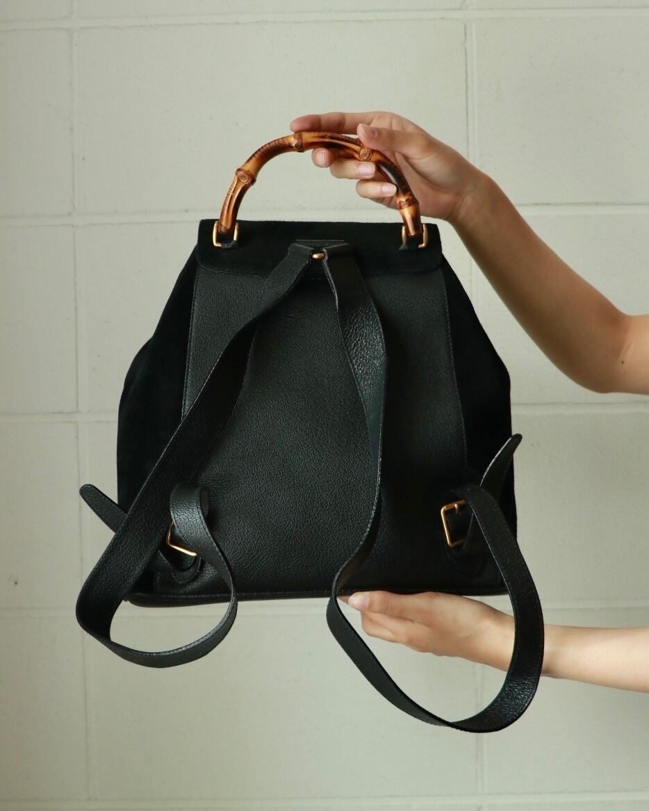 old GUCCI suede bamboo backpack