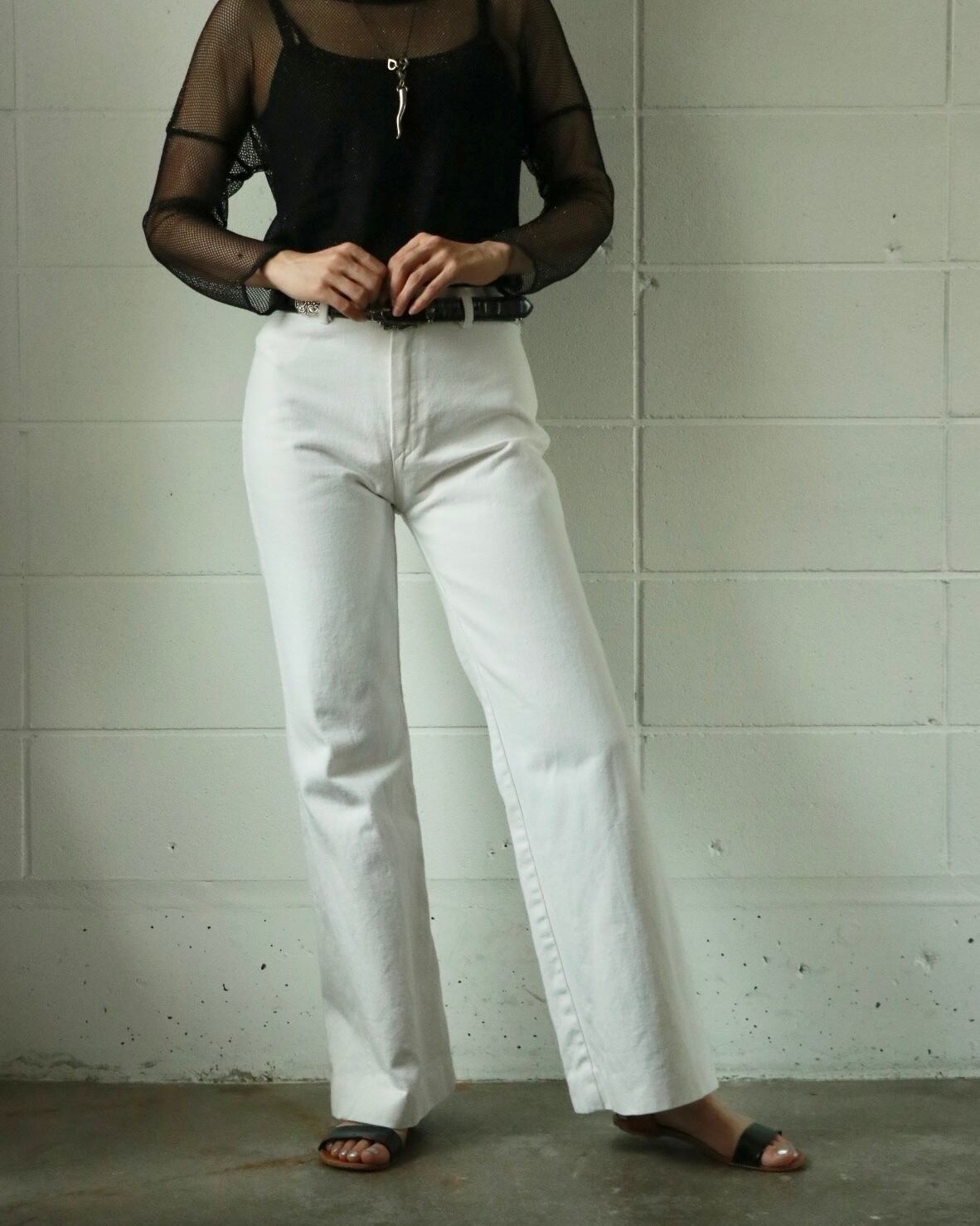 こちらは、シーズンムード高まるホワイトカラーが嬉しいmade in franceのもの。今季も人気のホワイトパンツ、かっちりしたスラックスなどもいいですが、履き慣れたデニムで取り入れてみるのもオススメ。