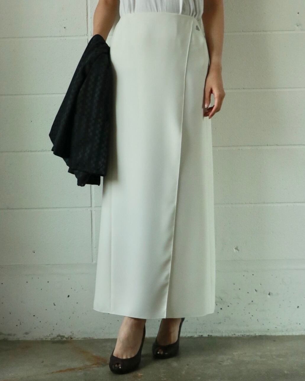 歩くたびにちらっと肌が見えるセンシュアルなデザインでもありながら絶妙な着丈が大人レディーを表現します。とってもロマンチックなスカートでずっと大切に着たい一着です。