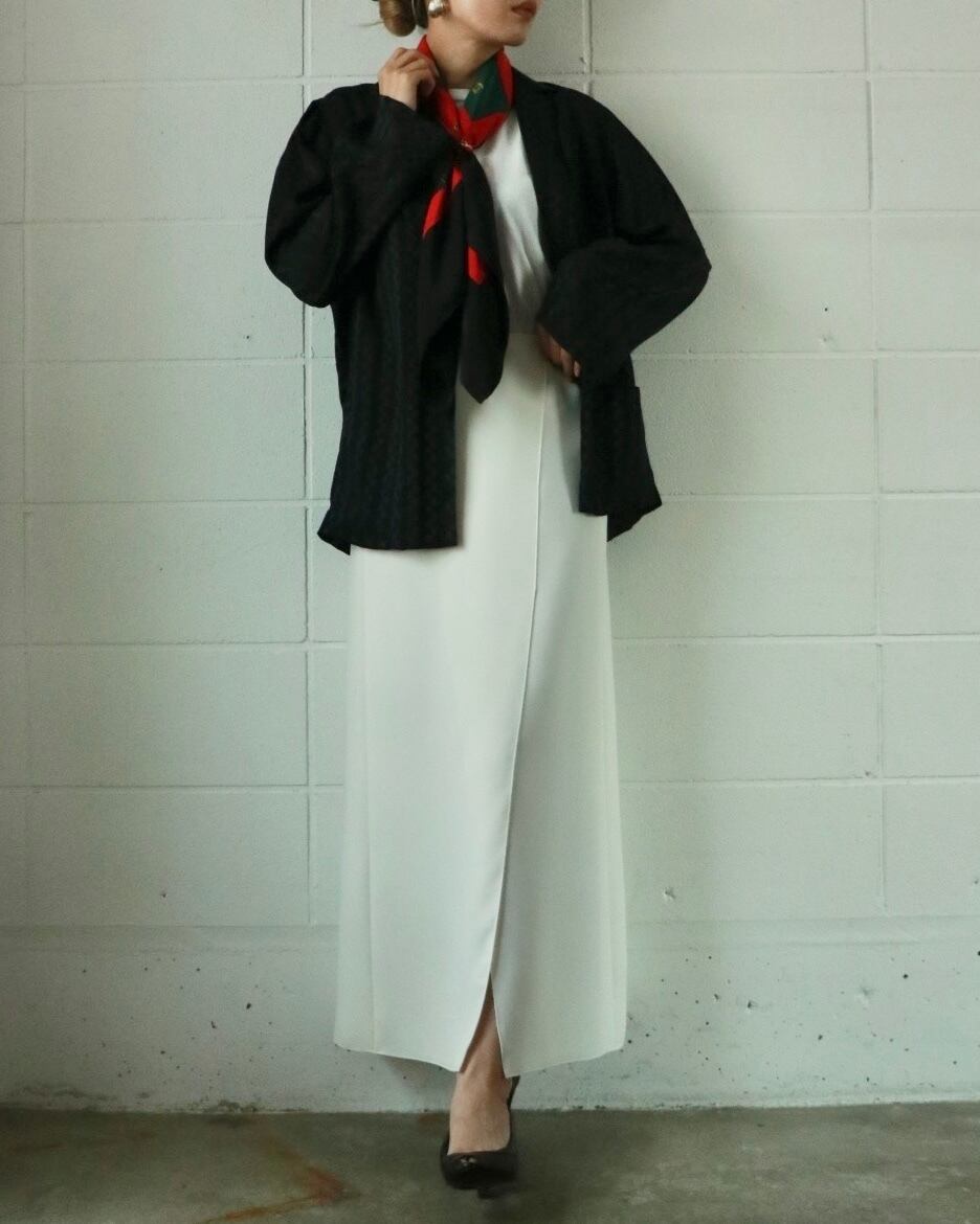 清潔感のある真っ白のスリット入りスカートは2000年のシャネル。