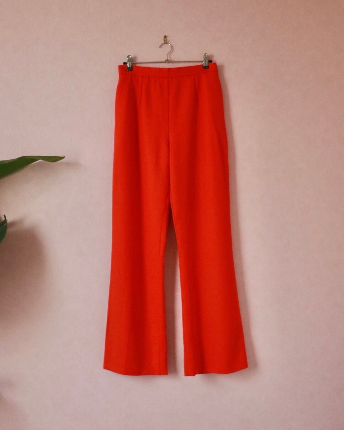 パキッとしたオレンジカラーを主役にデザインはミニマムに削ぎ落とされつつ、しっかりポケット有。ハイライズに綺麗目なワイドシルエット。