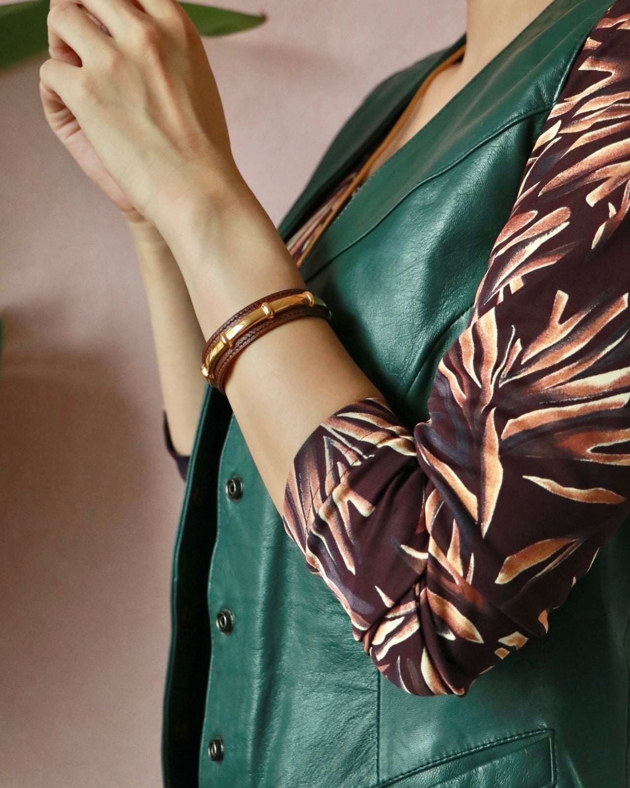 定番人気のブラウンレザーをベースにジュエリーのように輝くゴールドアクセントが手元をエレガントに演出します。