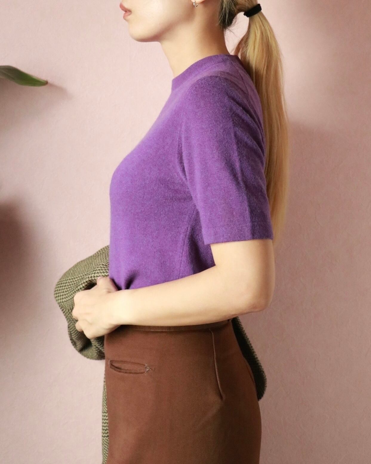 引き込まれるような上品なパープルカラーも魅力的です。シンプルなニットこそ上質なものをチョイスして、大人の着こなしを楽しみたいです。