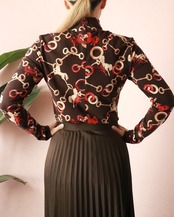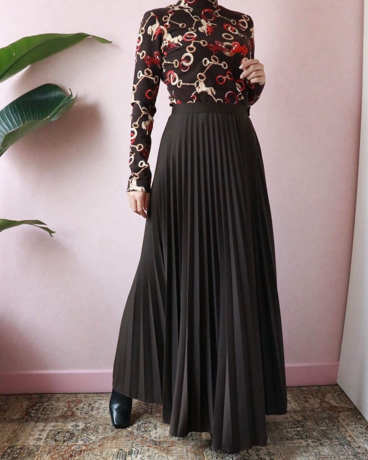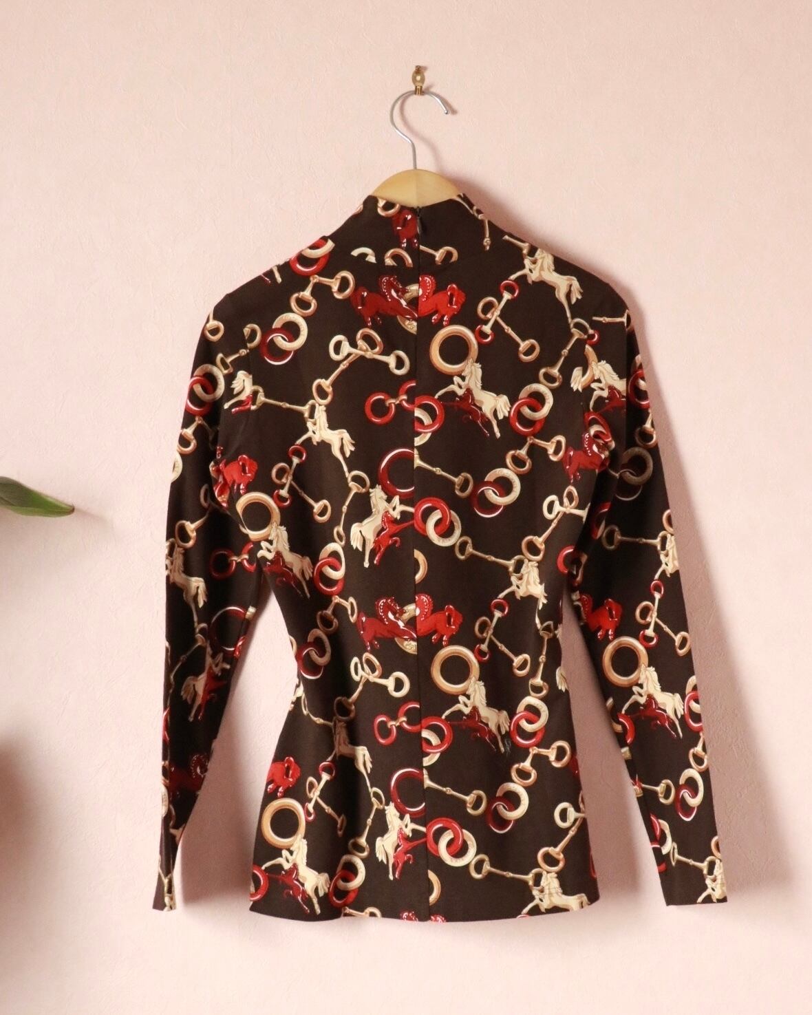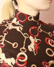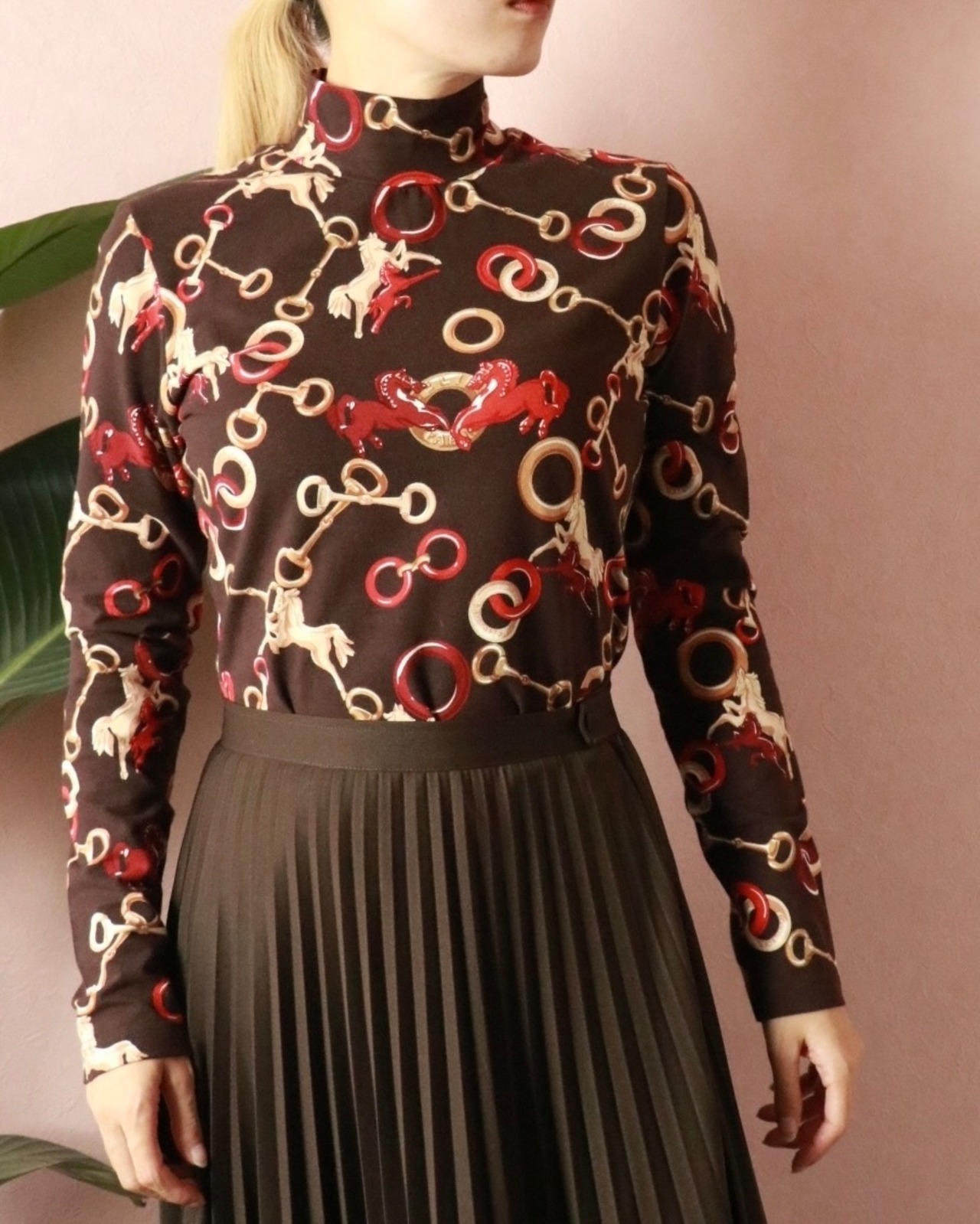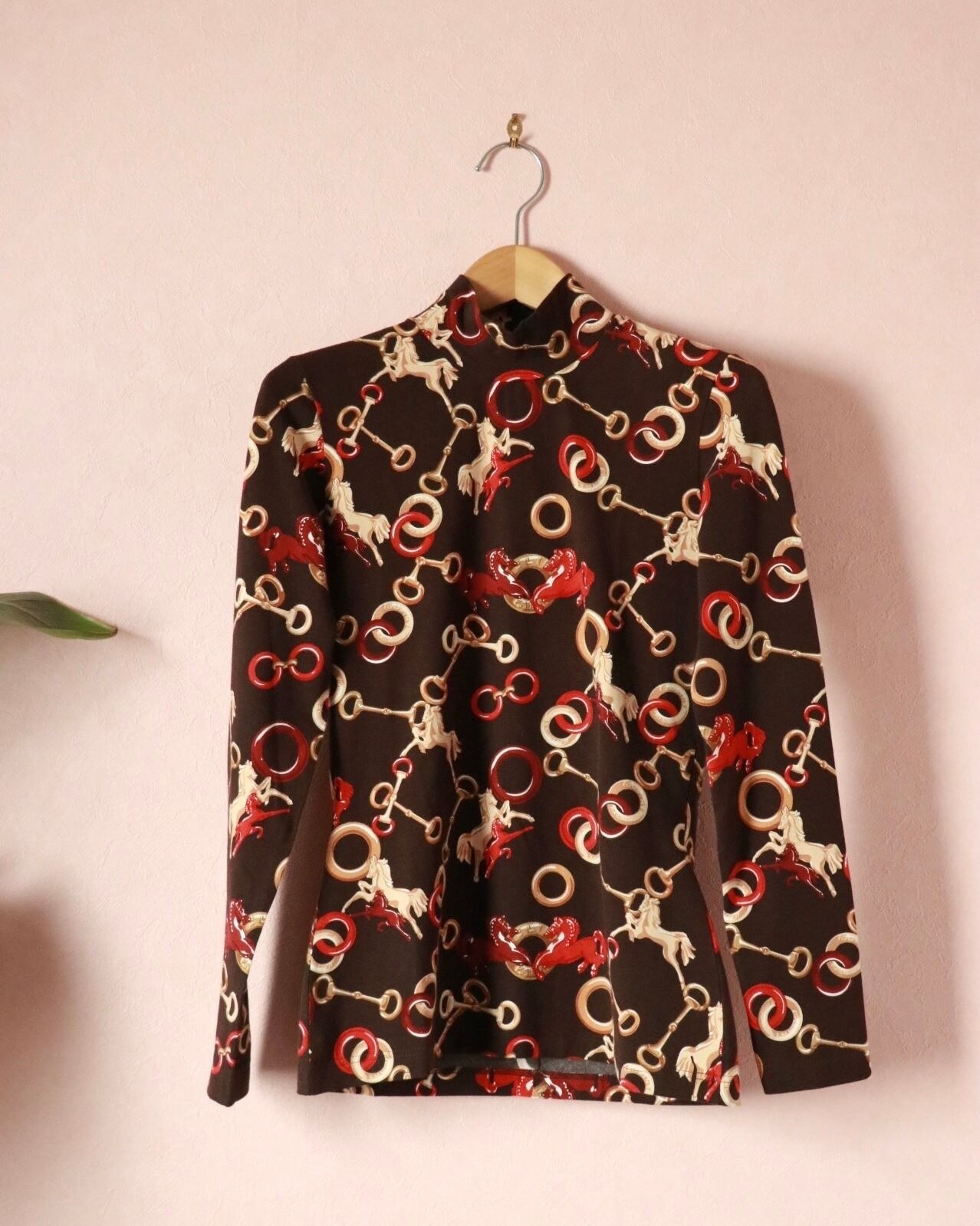 シーズンムードを高める、茶色ベースにホースビットやサークルロゴ、馬の総柄があしらわれたデザイン。