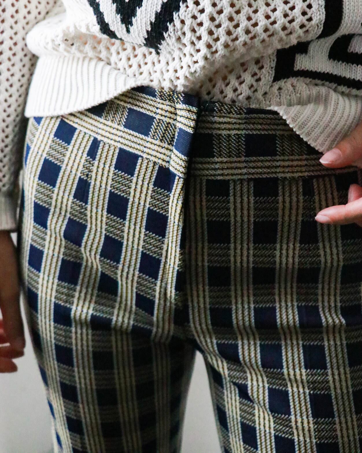 70's navy × yellow check pants