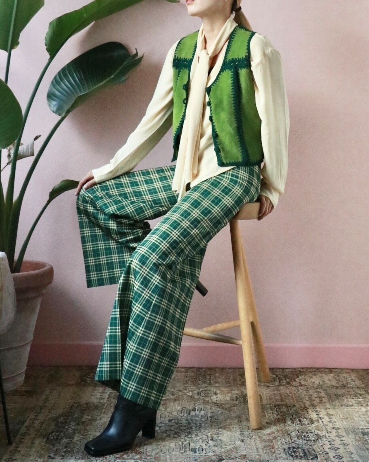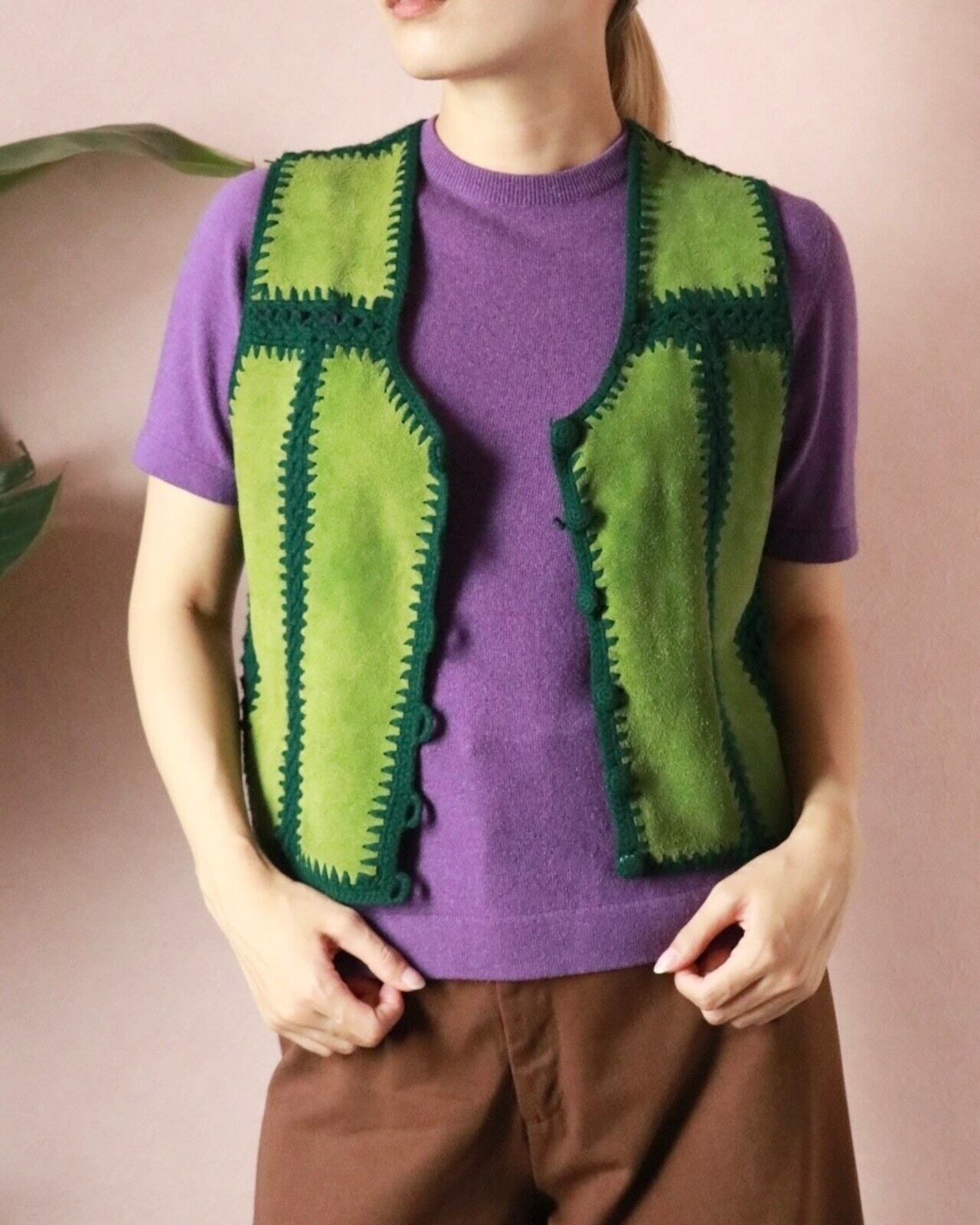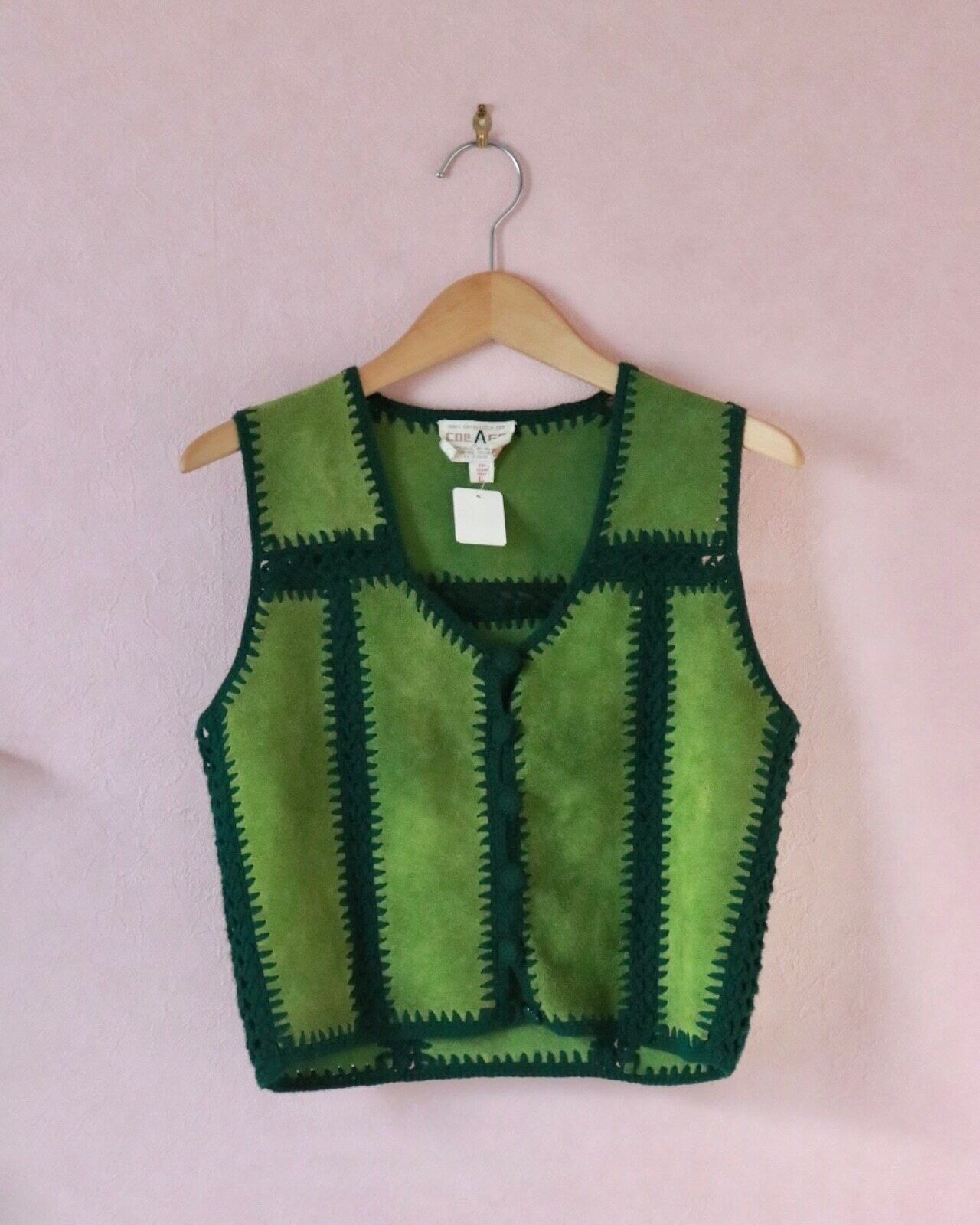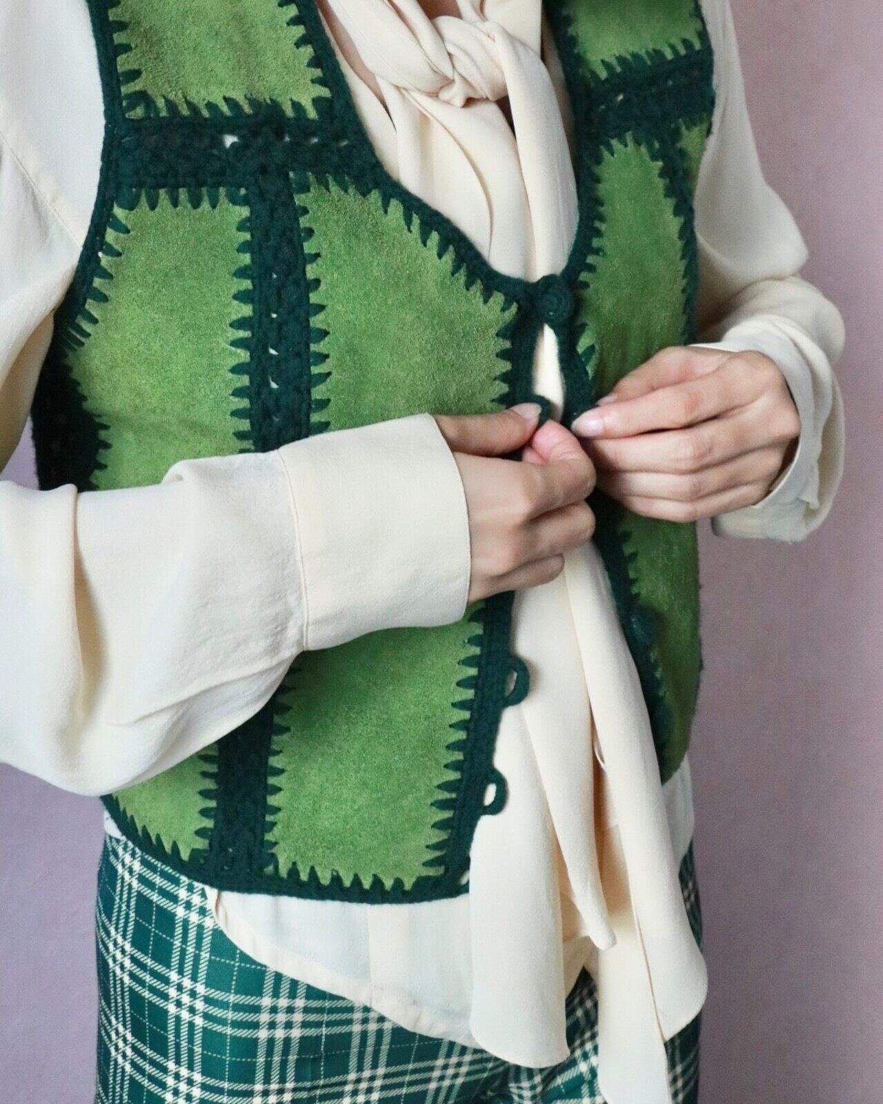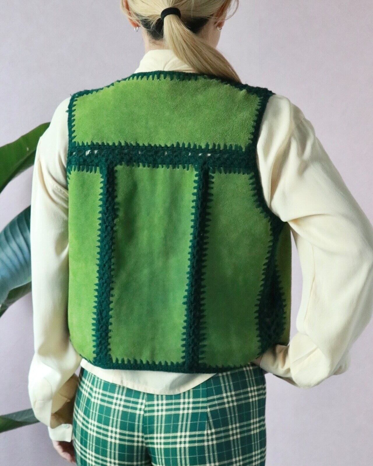 70s green suède block vest