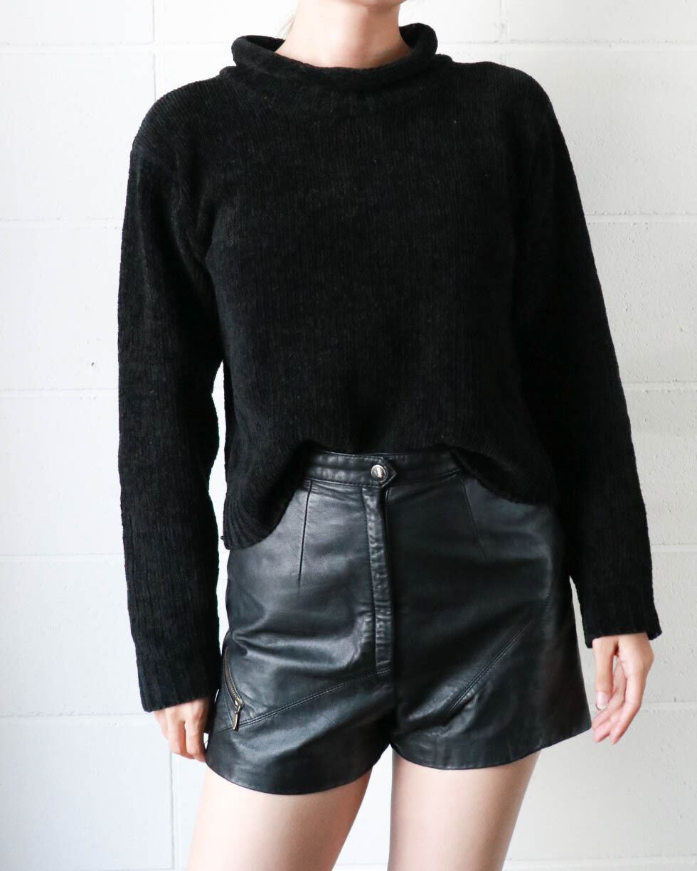 90's leather short pants