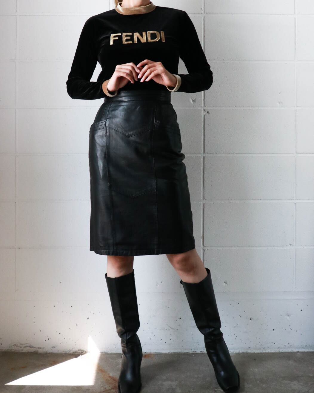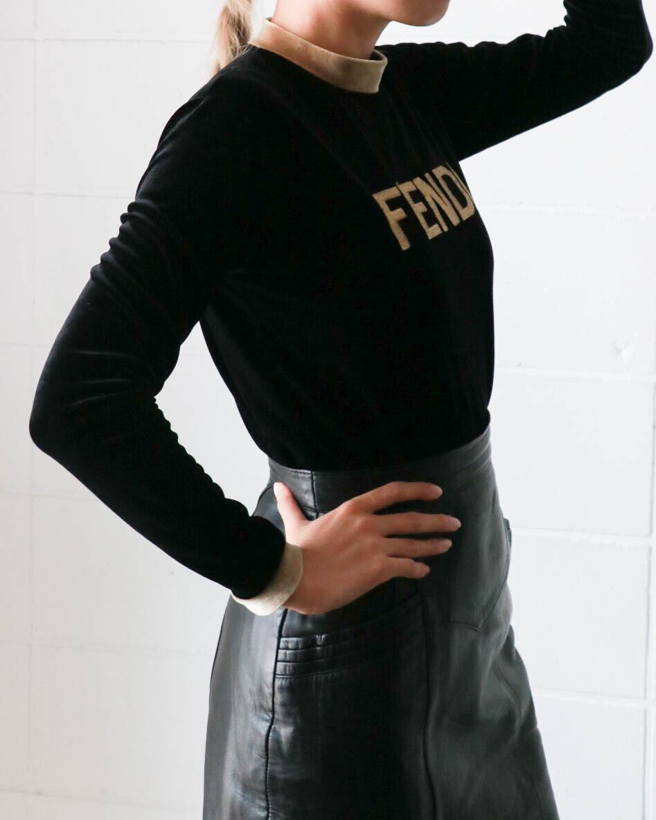 着心地の良い滑らかなベロア素材のトップスはFENDIのもの。