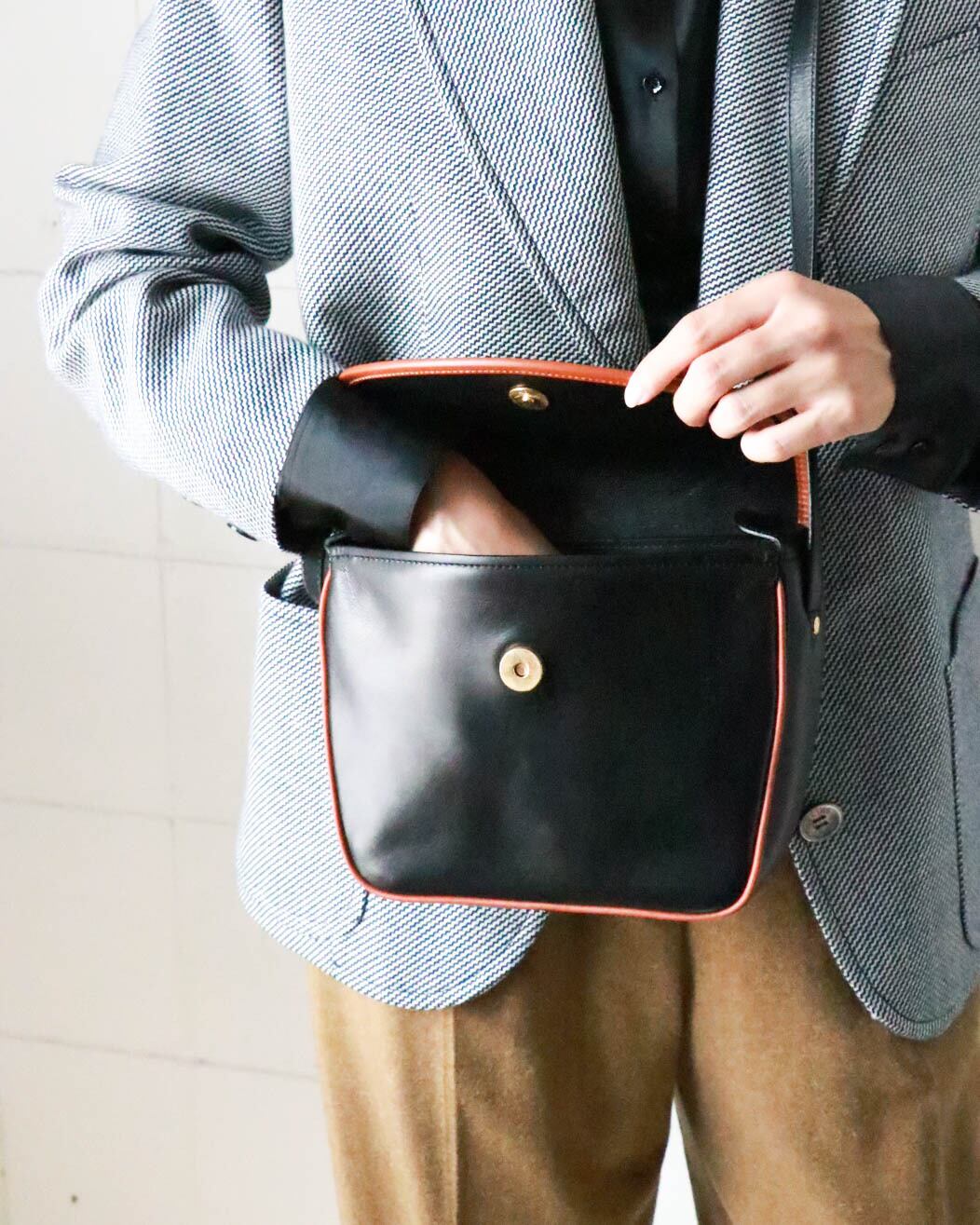 SIZE 【ー】縦:約19cm / 横:約21cm/ マチ:約6cm/ 紐(調整穴 可 : 取り外し 不可)全長:約104~109cm