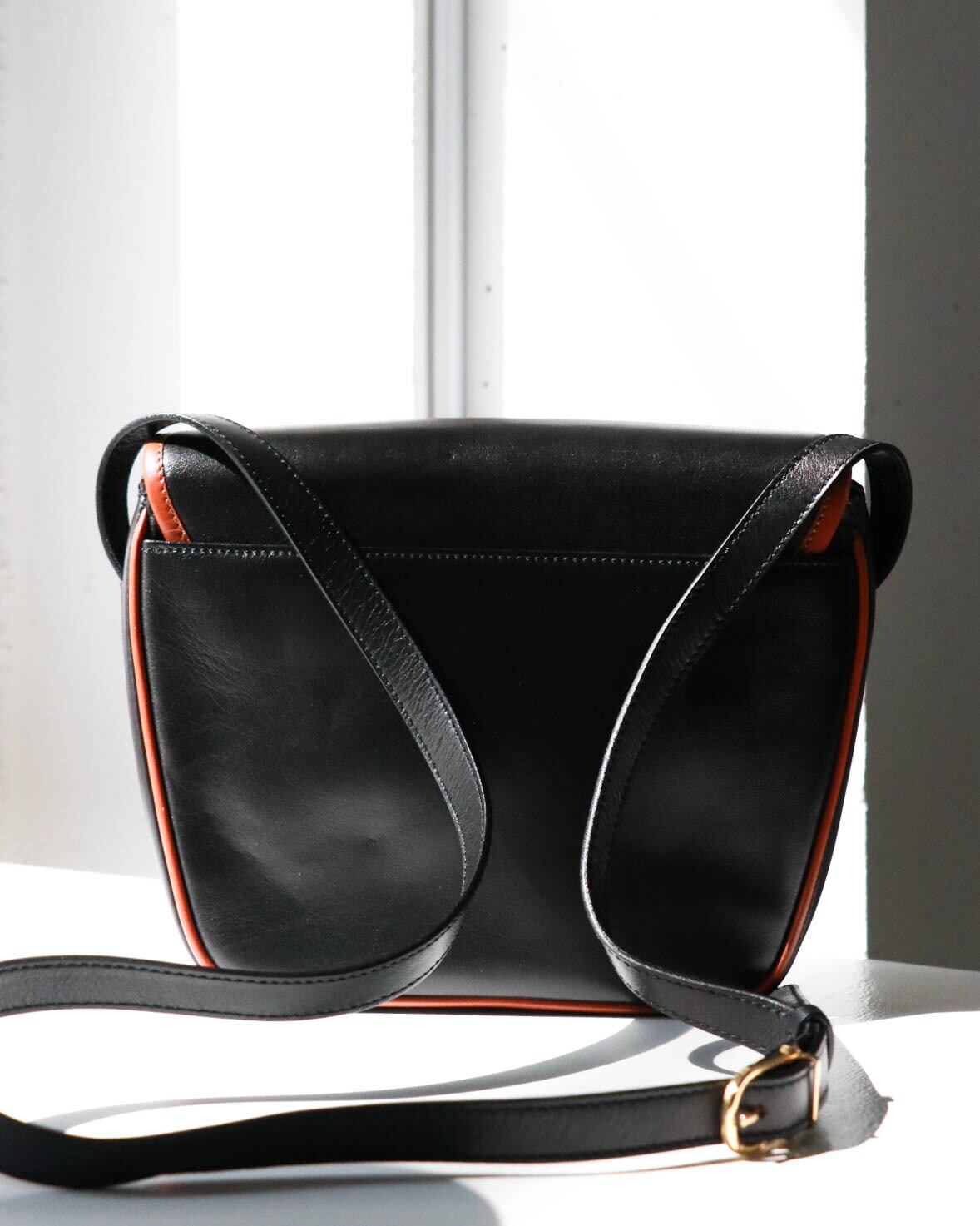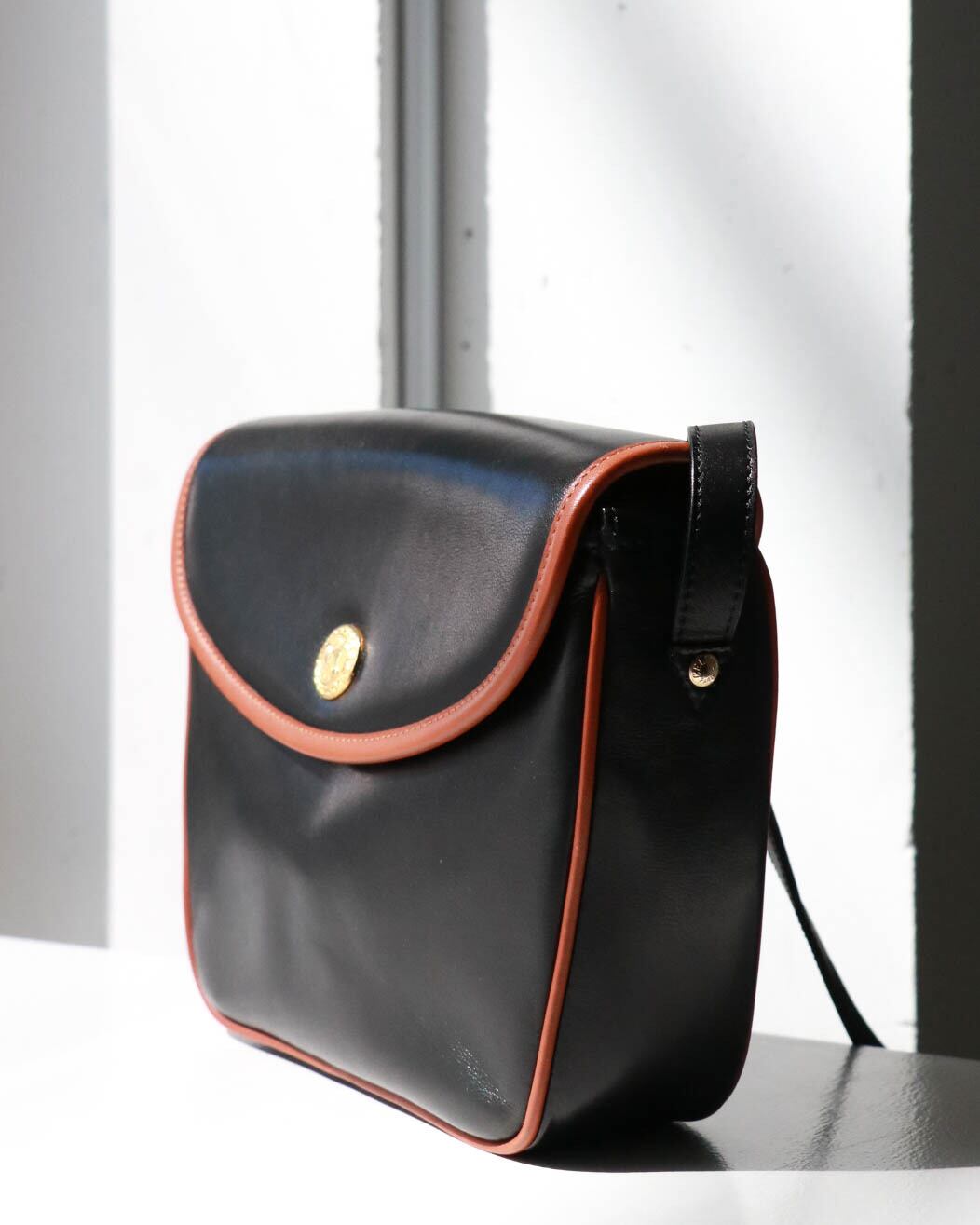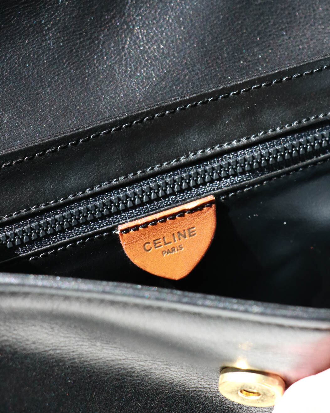 ライトブラウンとブラックのバイカラーに柔らかなレザーを使用したセリーヌのバッグ。